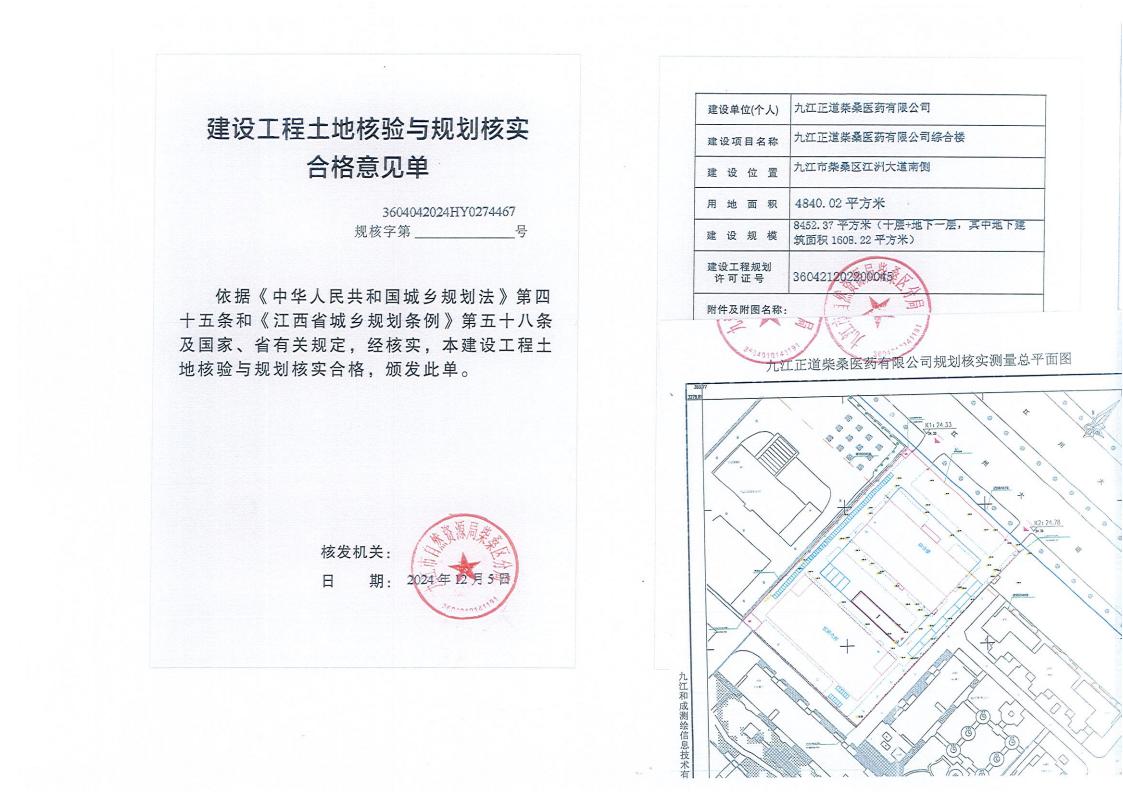 九江正道柴桑医药有限公司综合楼土地核验与规划核实结果公示