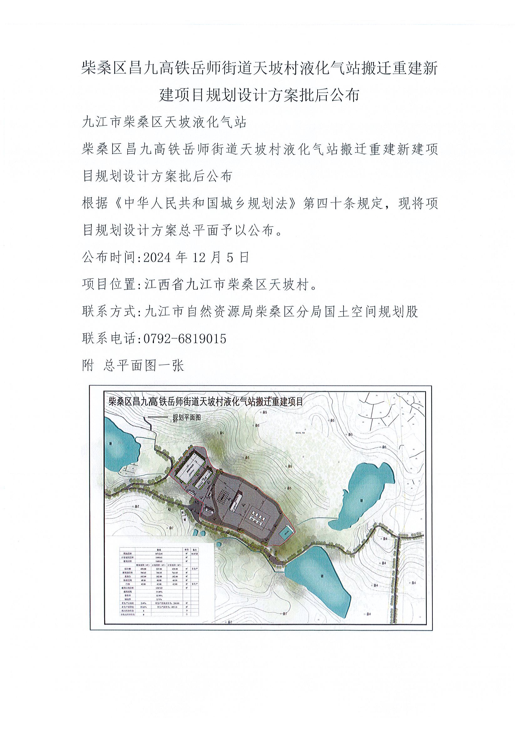 柴桑区昌九高铁岳师街道天坡村液化气站搬迁重建新建项目规划设计方案批后公布