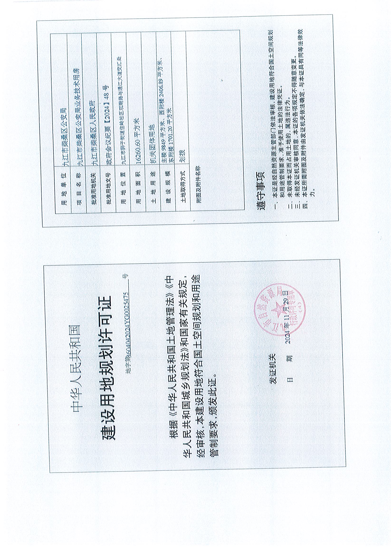 九江市柴桑区公安局业务技术用房建设用地规划许可证批准结果公示