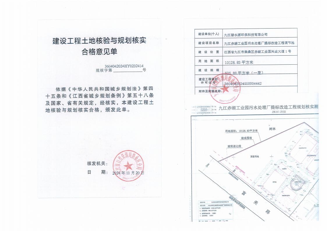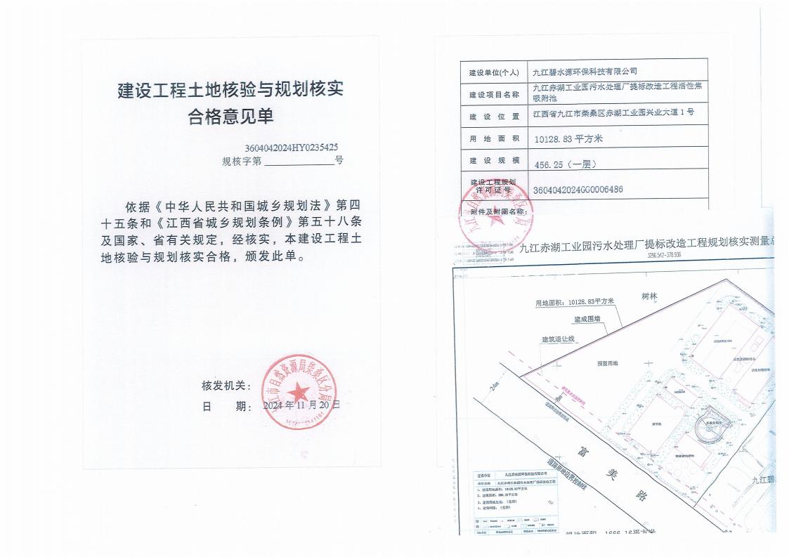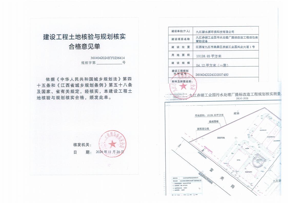 九江赤湖工业园污水处理厂提标改造工程活性焦再生车间、污水暂存间、调节池、多效分离池、铁碳微电解池、活性焦吸附池、辅助设备土地核验与规划核实结果公示