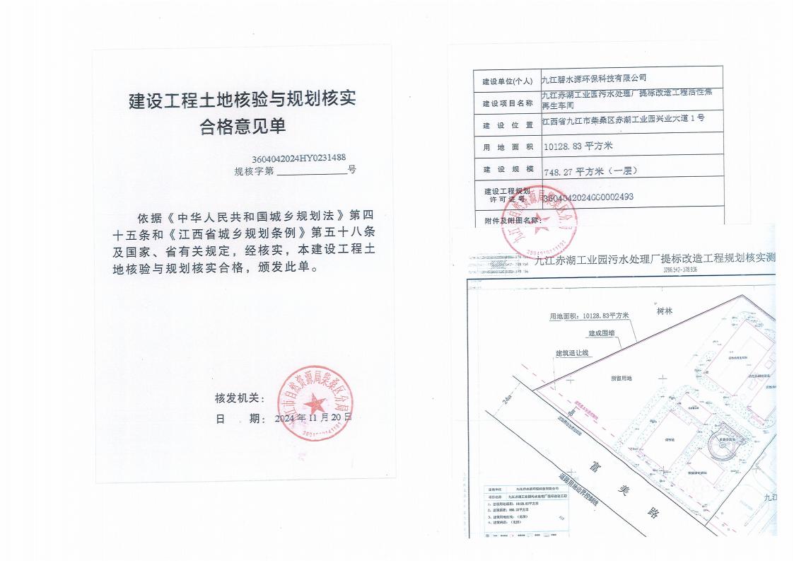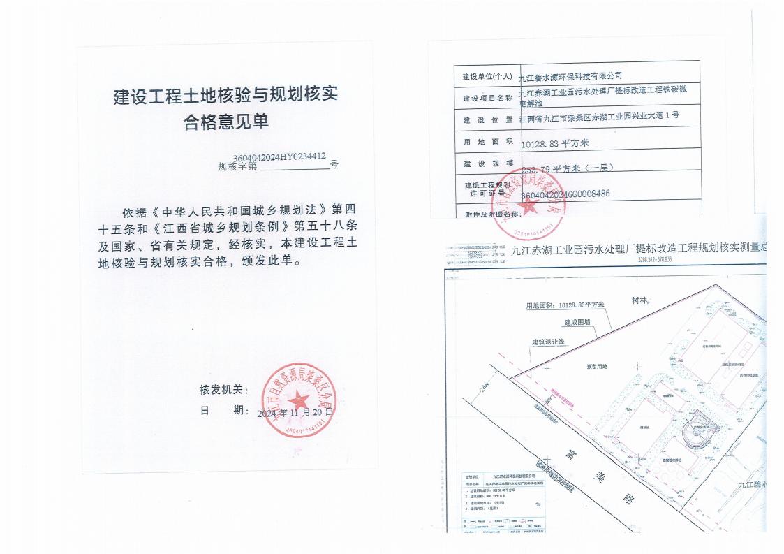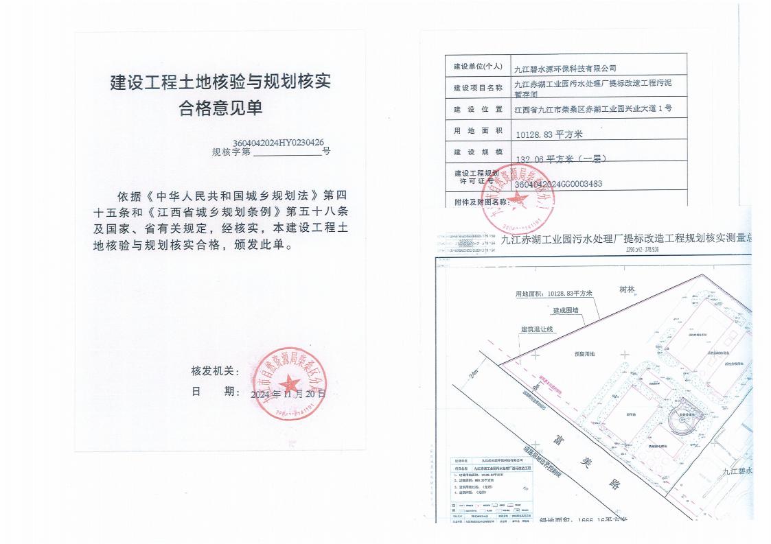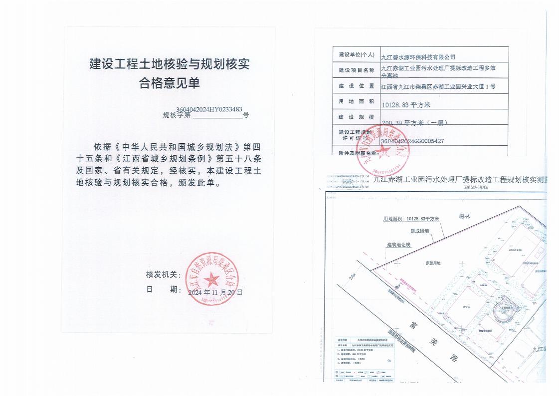 九江赤湖工业园污水处理厂提标改造工程活性焦再生车间、污水暂存间、调节池、多效分离池、铁碳微电解池、活性焦吸附池、辅助设备土地核验与规划核实结果公示