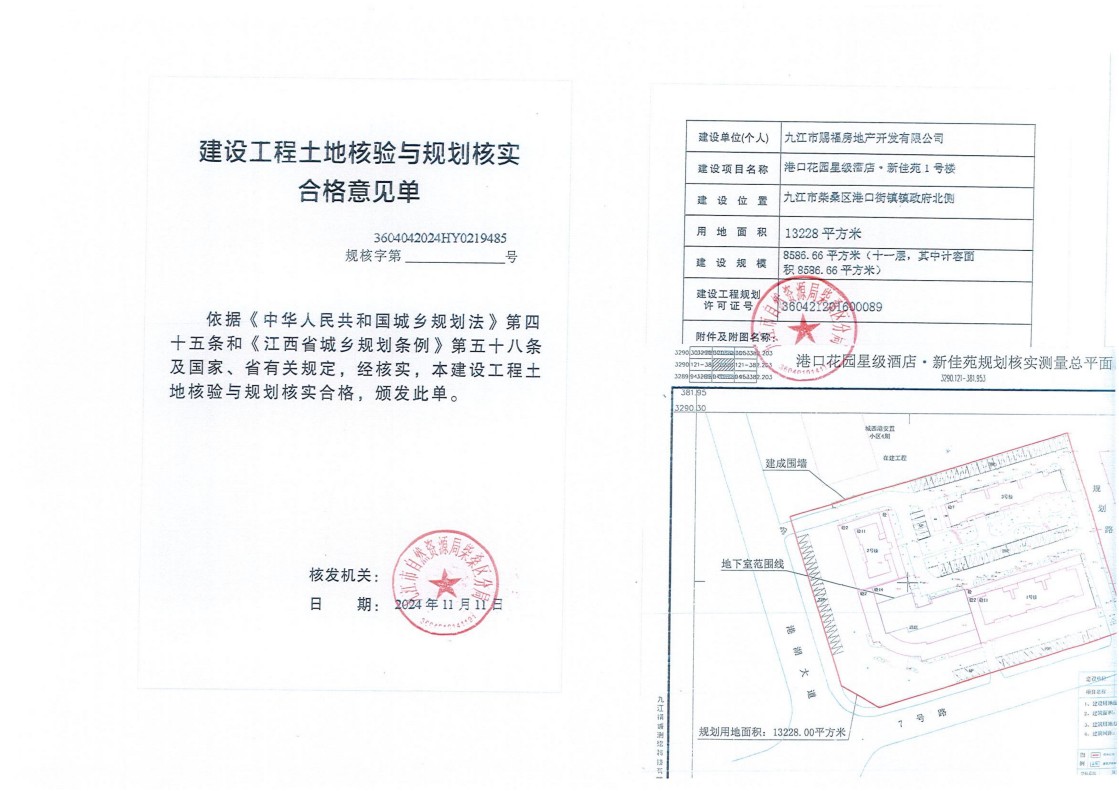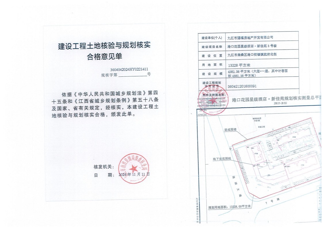 港口花园星级酒店·新佳苑酒店、1#-3#楼土地核验与规划核实结果公示