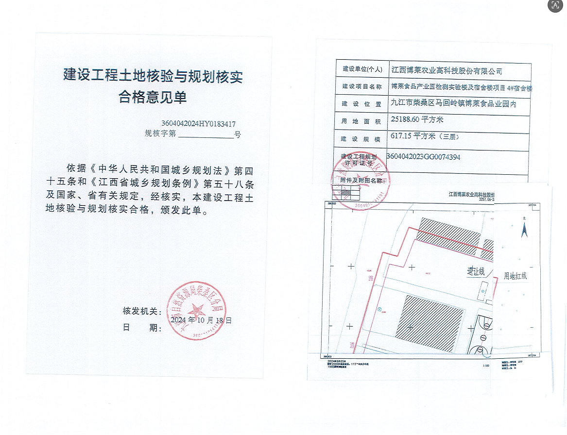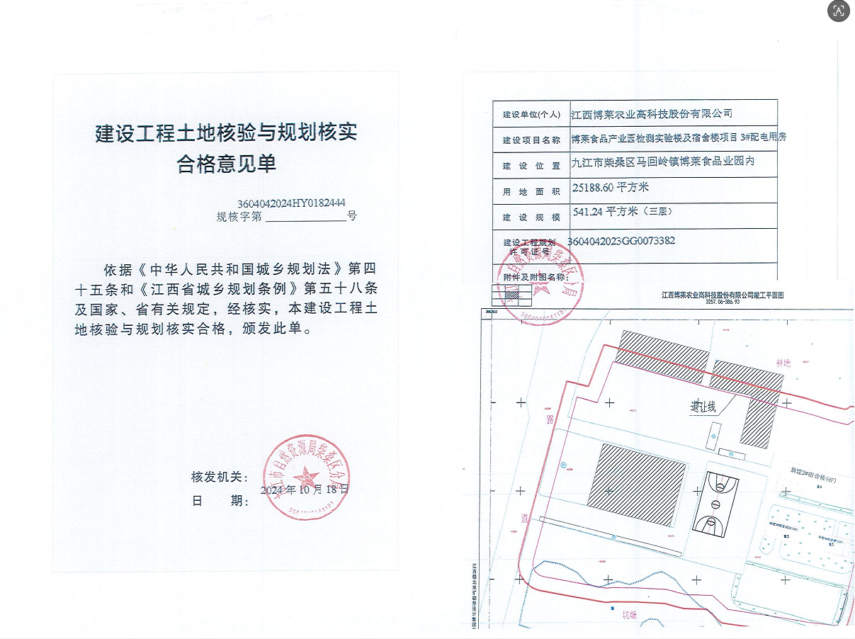 博莱食品产业园检测实验楼及宿舍楼项目*#宿舍楼、*#配套用房、*#宿舍楼土地核验与规划核实结果公示