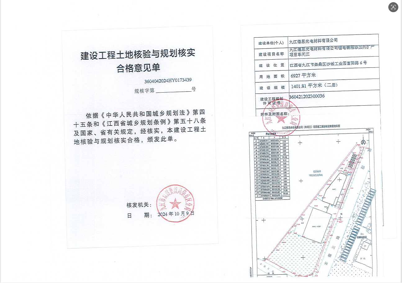 九江德思光电新材料有限公司锂电铜箔添加剂扩产项目车间三土地核验与规划核实结果公示