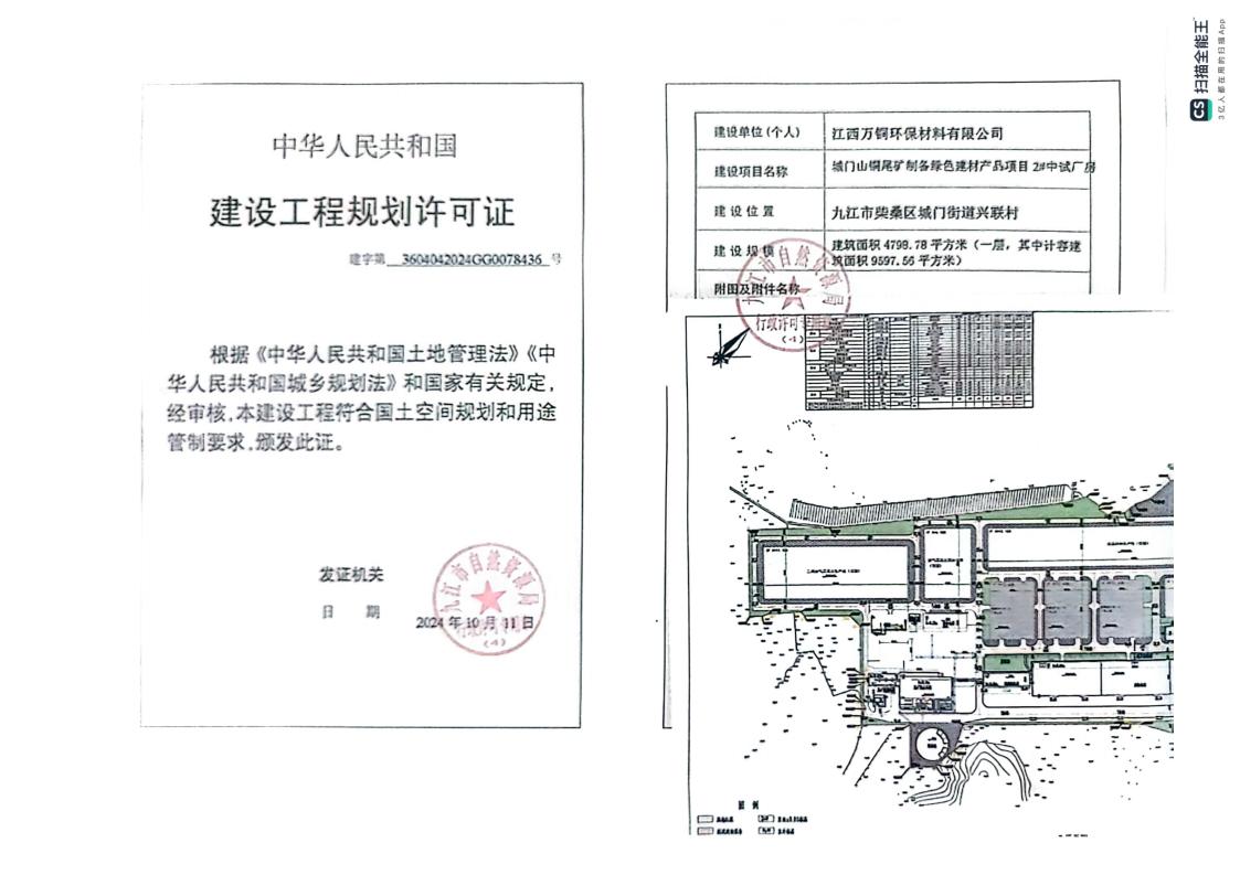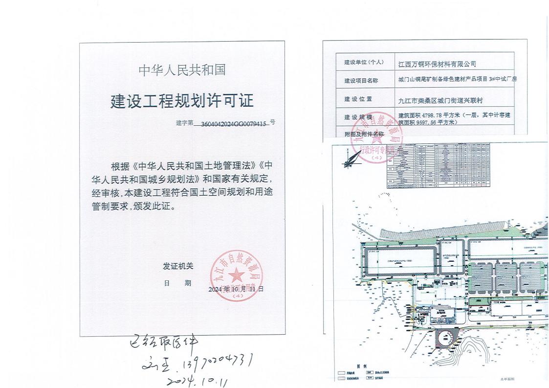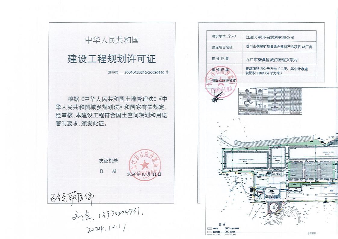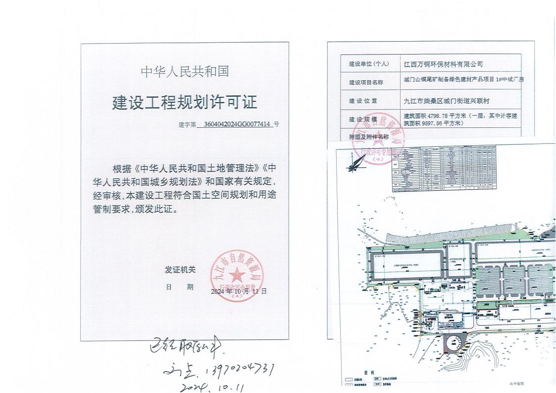 城门山铜尾矿制备绿色建材产品项目建设工程规划许可批准结果公示