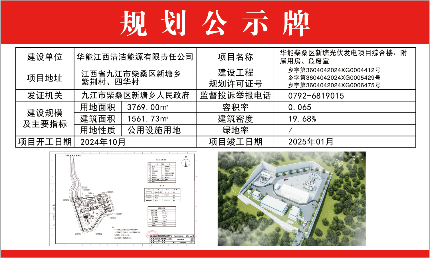 华能柴桑区新塘光伏发电项目综合楼、附属用房、危废室批后公示