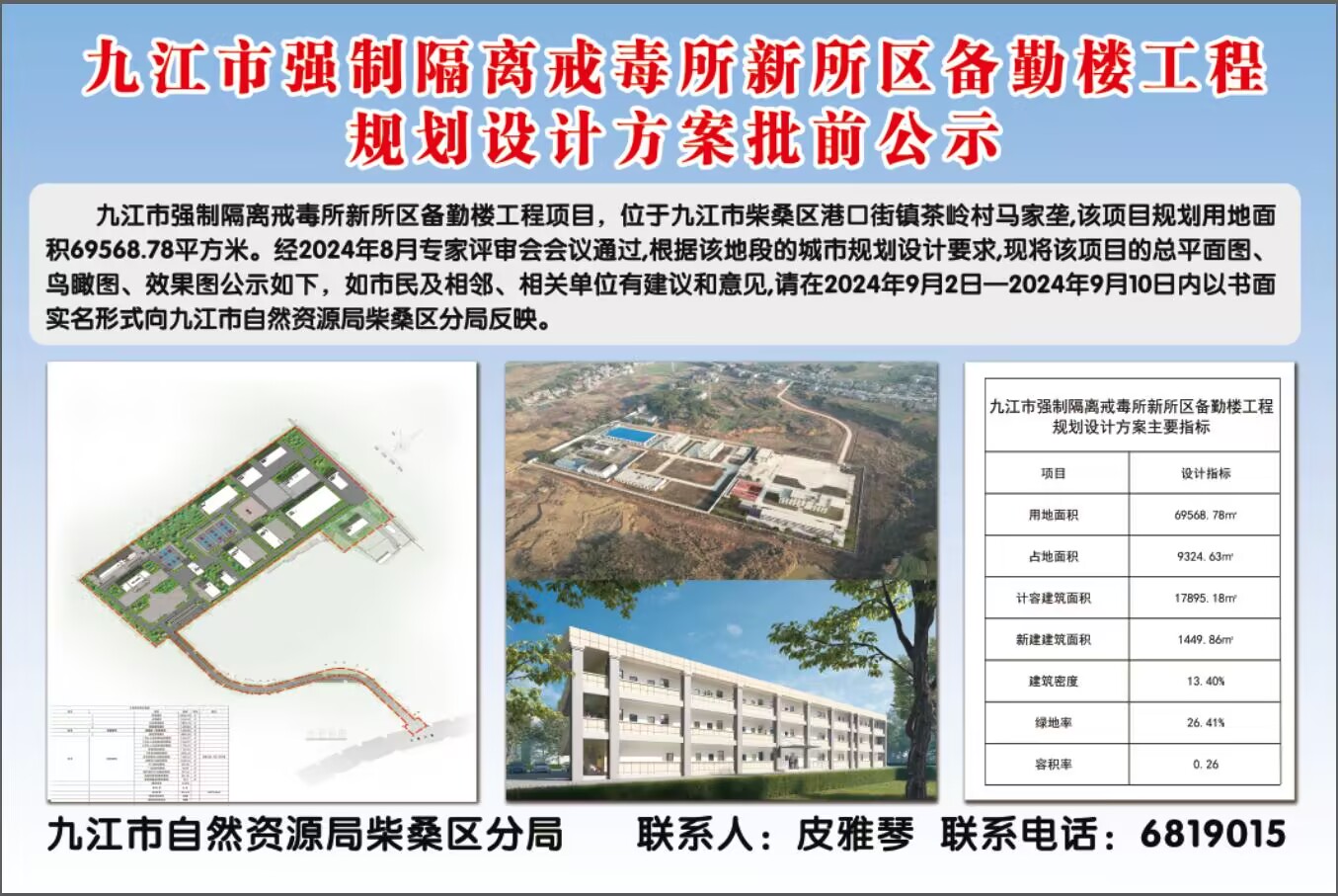 九江市强制隔离戒毒所新所区备勤楼工程规划设计方案批前公示