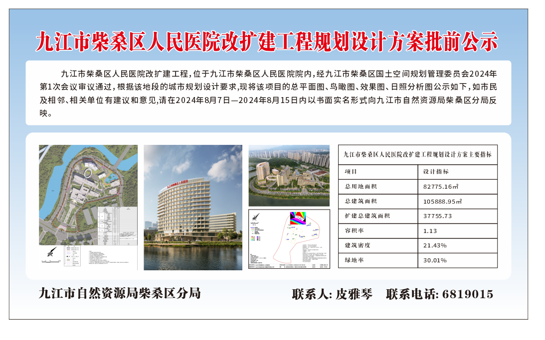 九江市柴桑区人民医院改扩建工程规划设计方案批前公示