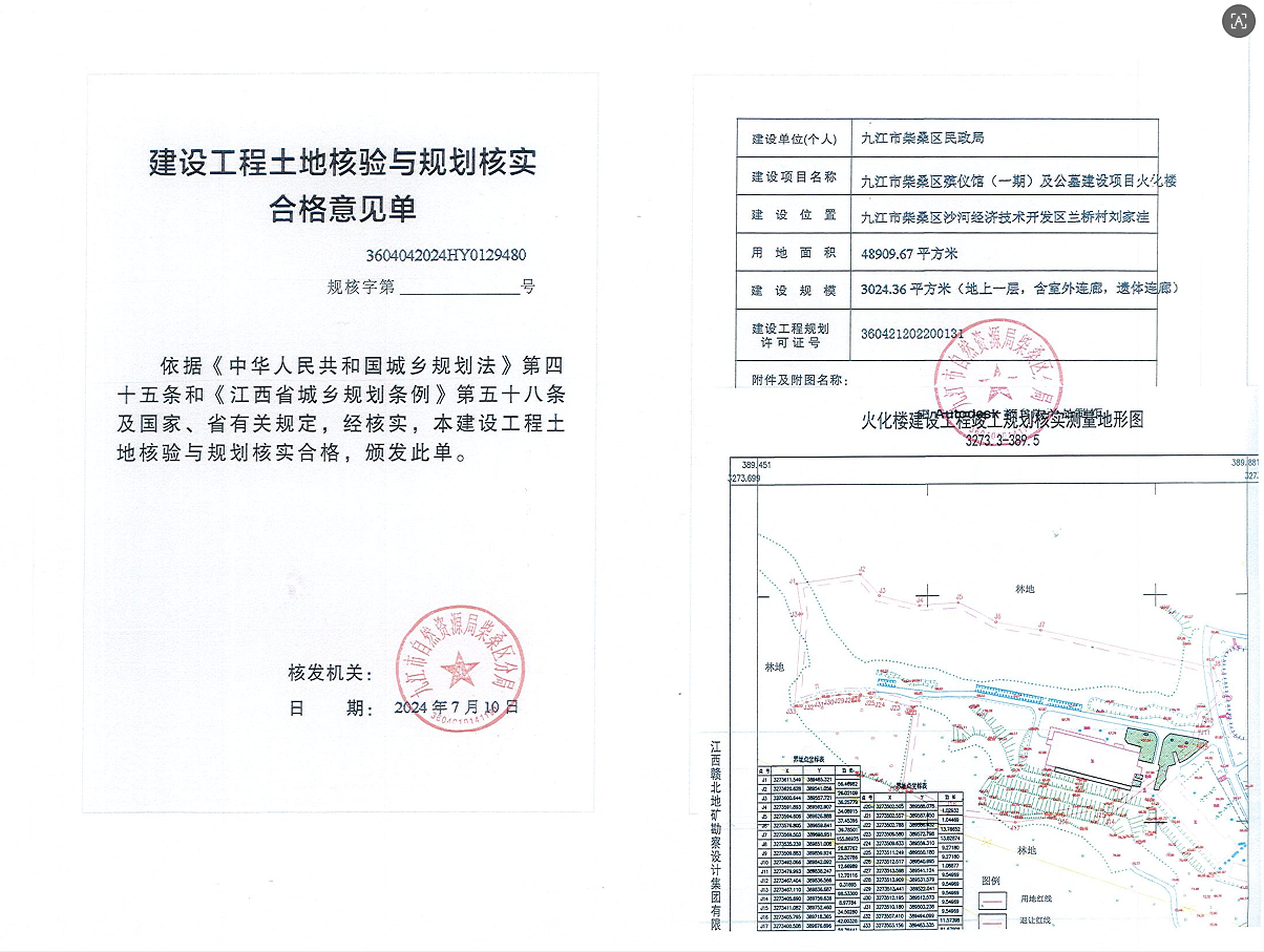九江市柴桑区殡仪馆 (一期)及公墓建设项目火化楼土地核验与规划核实结果公示