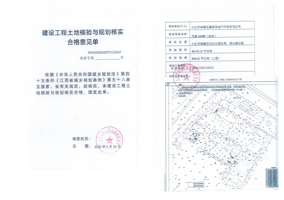 天樾商住小区6#、7#、12#、13#、15#、36#楼土地核验与规划核实结果公示