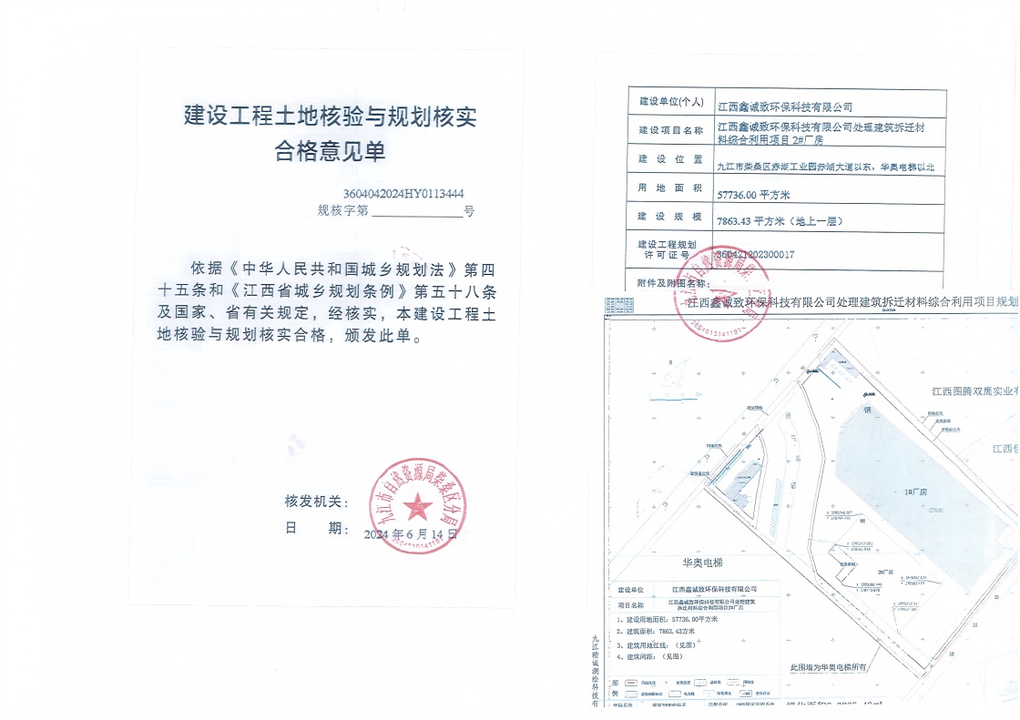 江西鑫诚致环保科技有限公司处理建筑拆迁材料综合利用项目2#厂房土地核验与规划核实结果公示