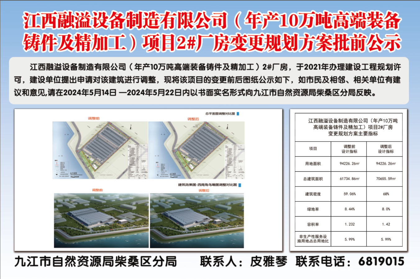 江西融溢设备制造有限公司(年产**万吨高端装备铸件及精加工)项目*#厂房变更规划方案批前公示