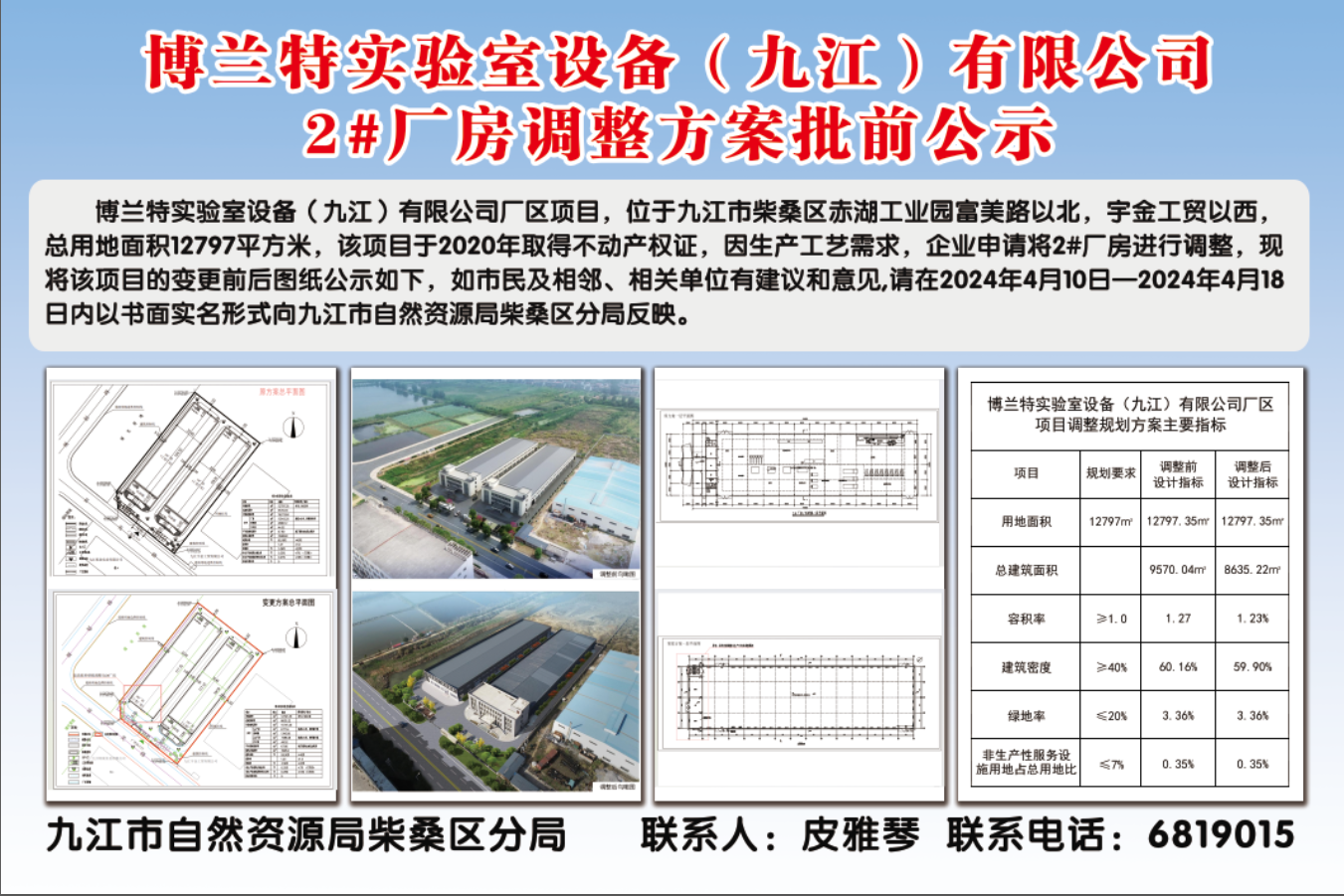 博兰特实验室设备(九江)有限公司*#厂房调整方案批前公示