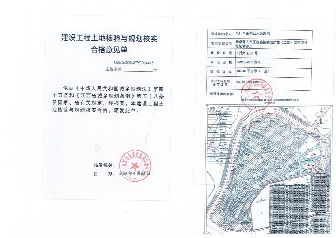 柴桑区人民医院感染楼改扩建(二期)工程项目新建感染楼、新建感染楼改扩建(发热门诊)、新建垃圾暂存点土地核验与规划核实结果公示