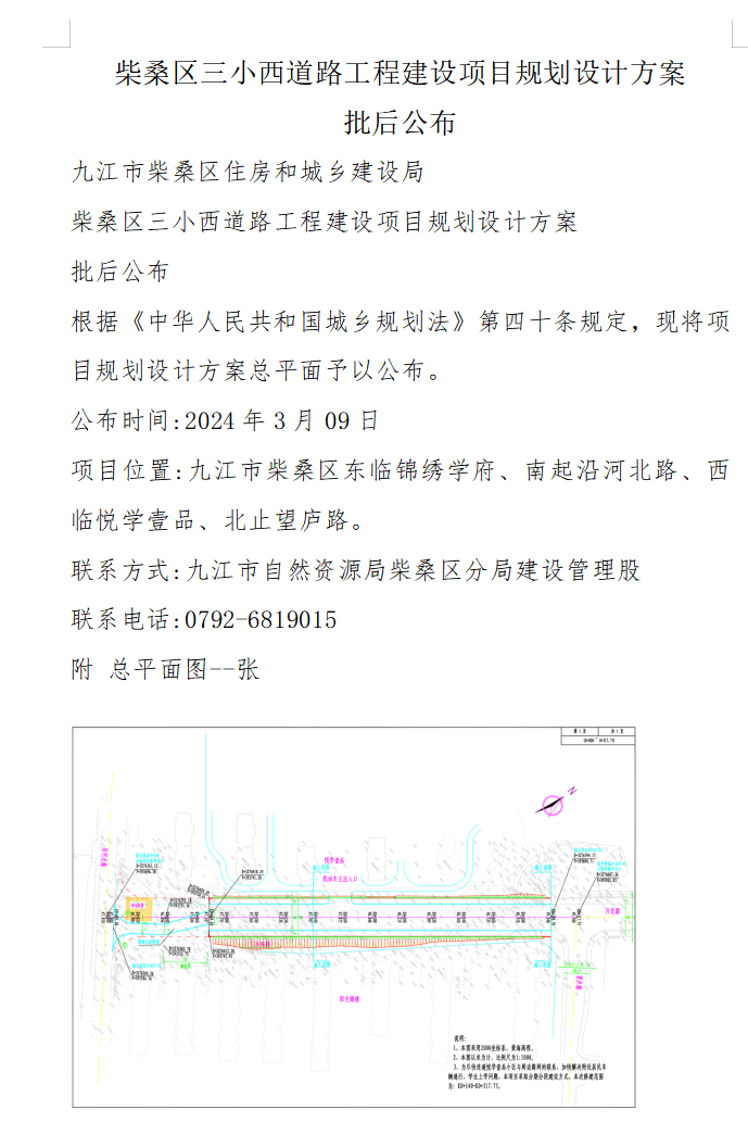 柴桑区三小西道路工程建设项目规划设计方案批后公布