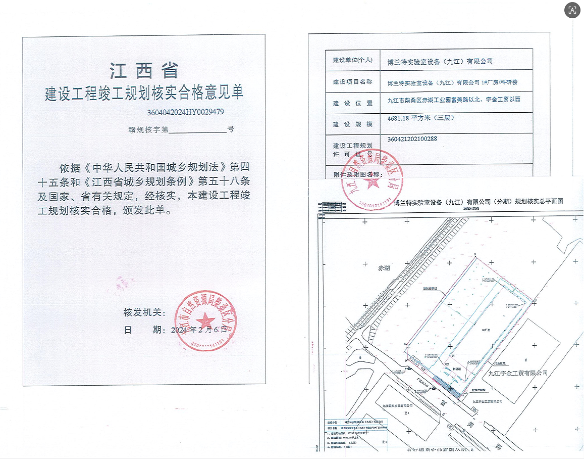 博兰特实验室设备(九江)有限公司*#厂房/科研楼土地核验与规划核实结果公示