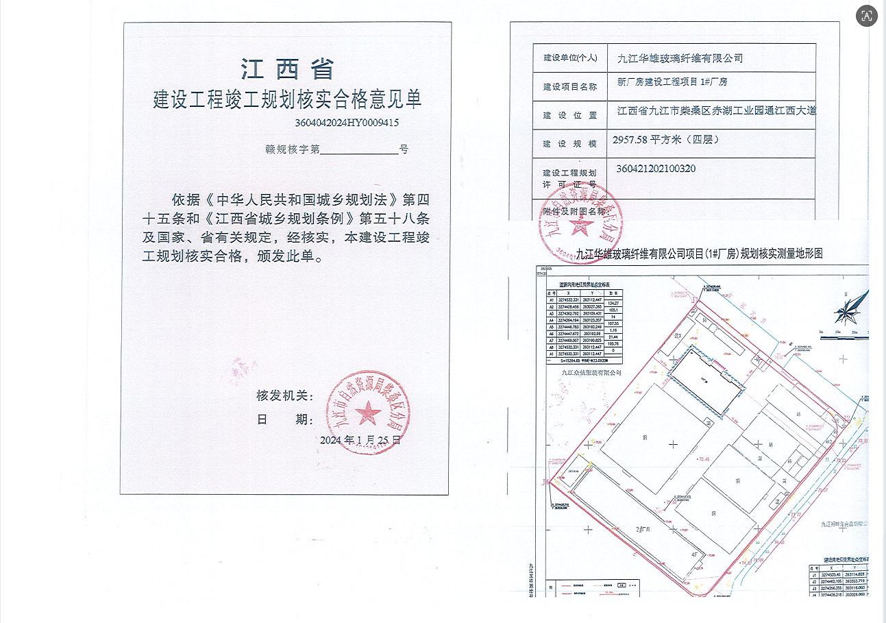 九江华雄玻璃纤维有限公司新厂房建设项目*#厂房土地核验与规划核实结果公示