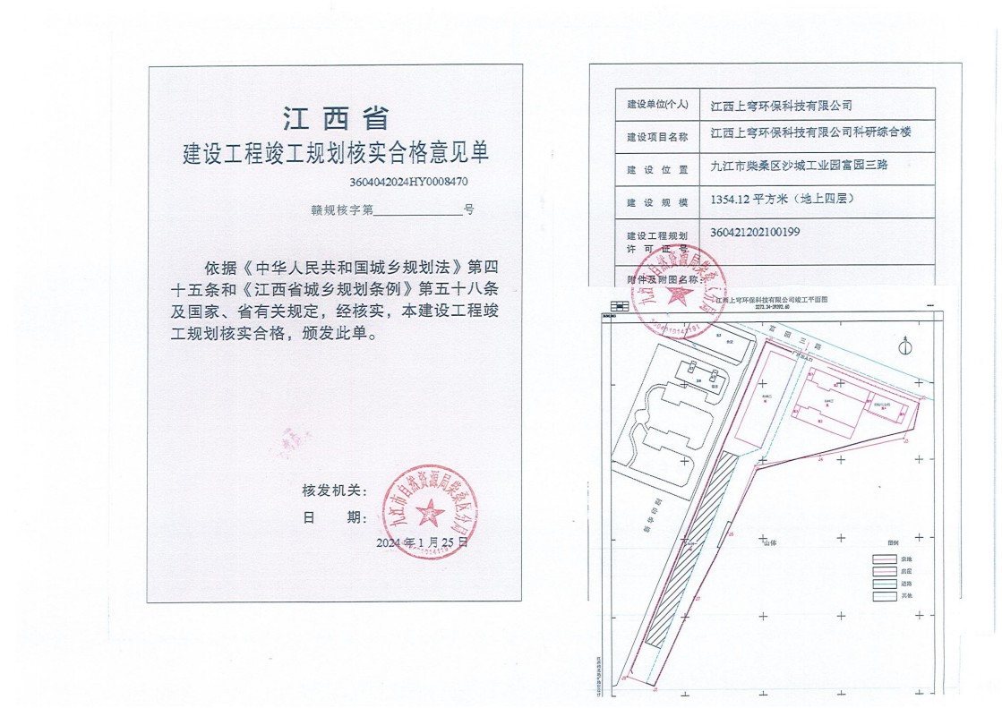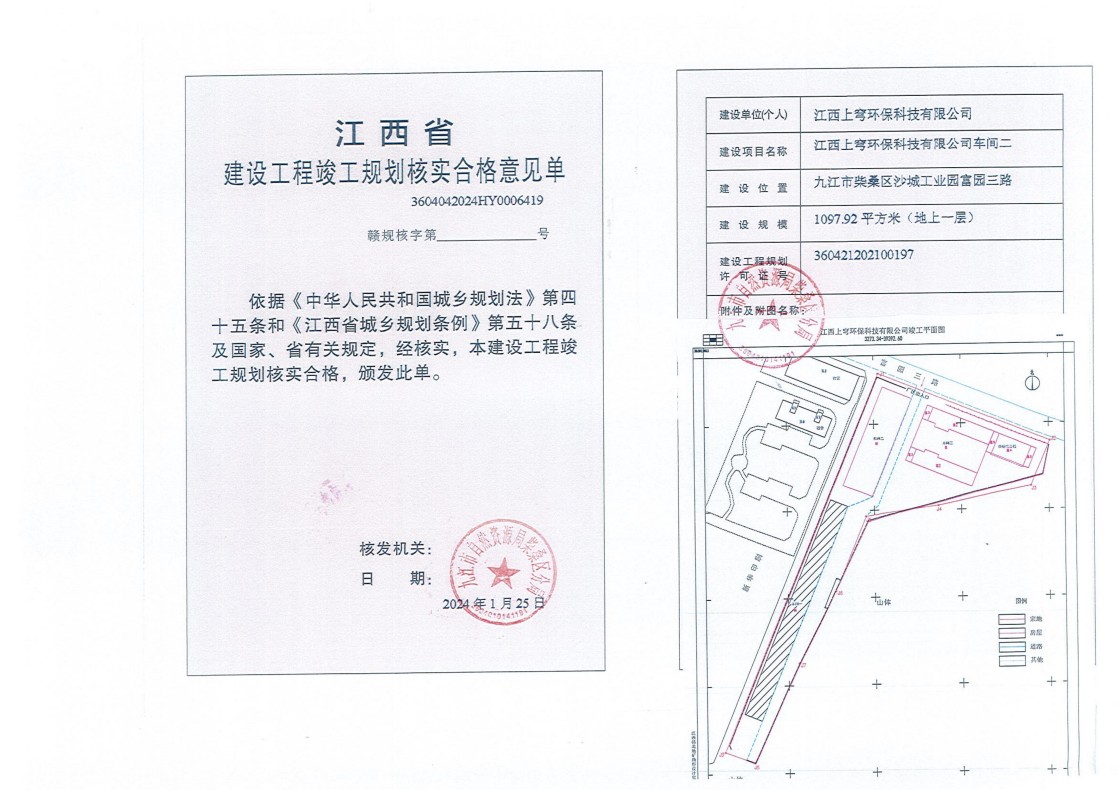 江西上穹环保科技有限公司车间二、车间三、可研综合楼土地核验与规划核实结果公示