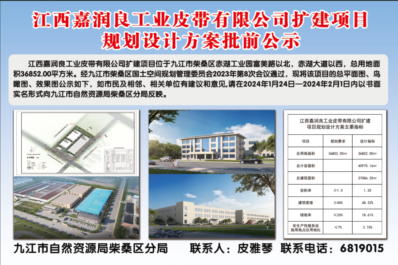 江西嘉润良工业皮带有限公司扩建项目规划设计方案批前公示