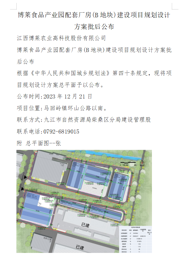 博莱食品产业园配套厂房(B地块)建设项目规划设计方案批后公布