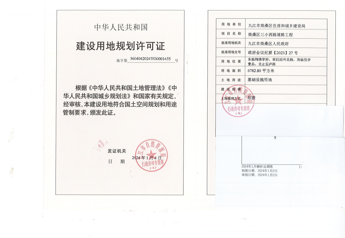 柴桑区三小西路道路工程项目建设用地规划许可证批准结果公示