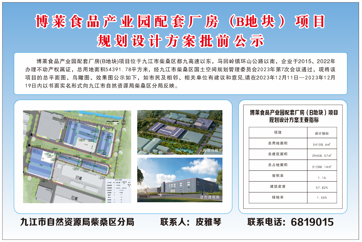 博莱食品产业园配套厂房(B地块)项目规划设计方案批前公示