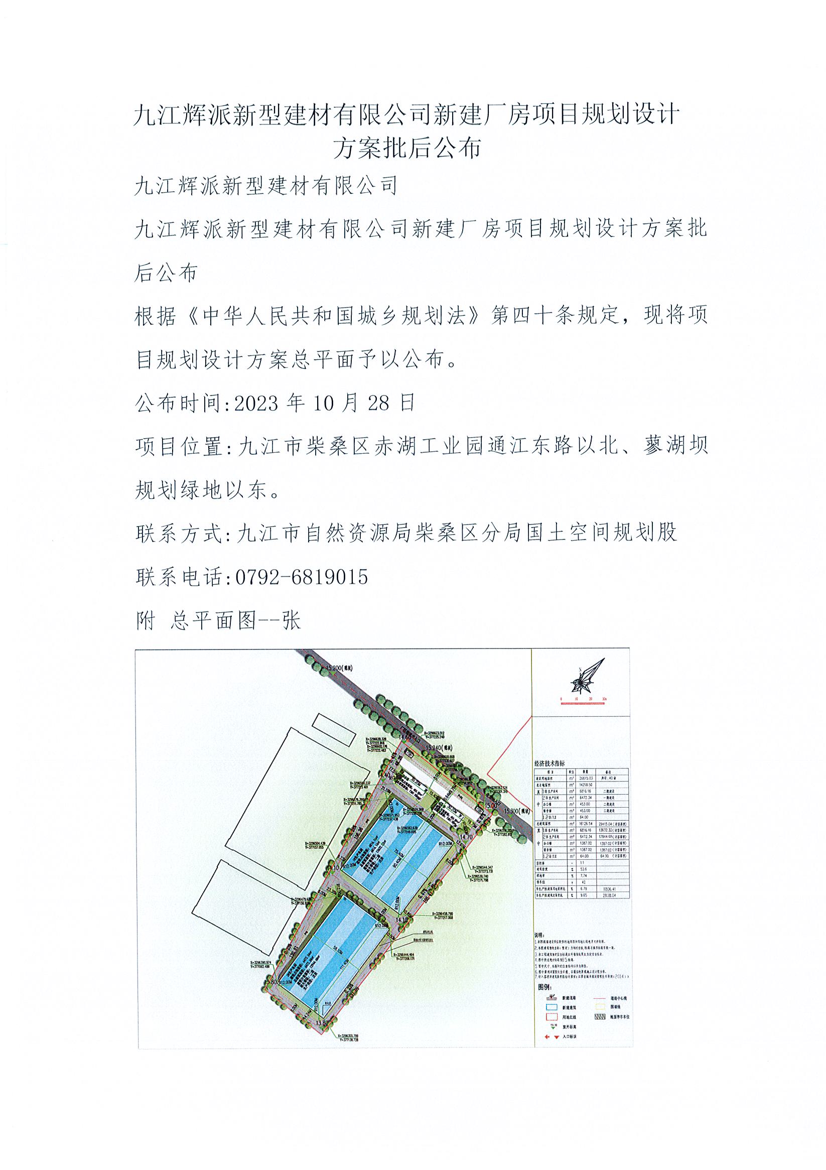 九江辉派新型建材有限公司新建厂房项目规划设计方案批后公布