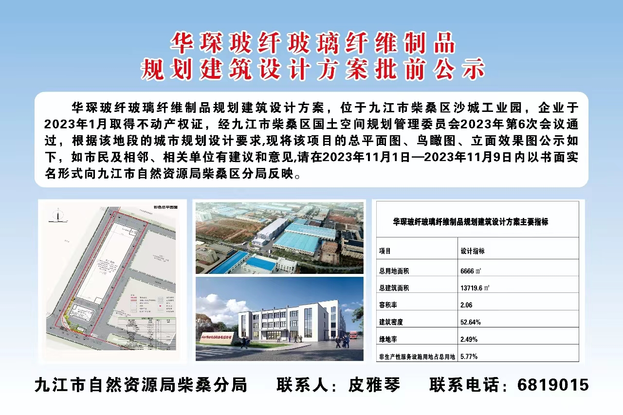 华琛玻纤玻璃纤维制品规划建筑设计方案批前公示