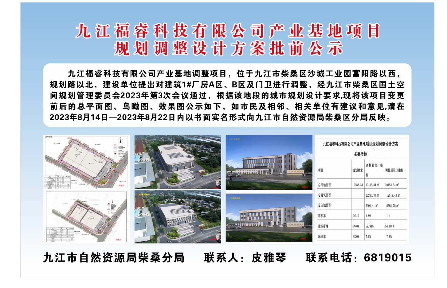 九江福睿科技有限公司产业基地项目规划调整设计方案批前公示