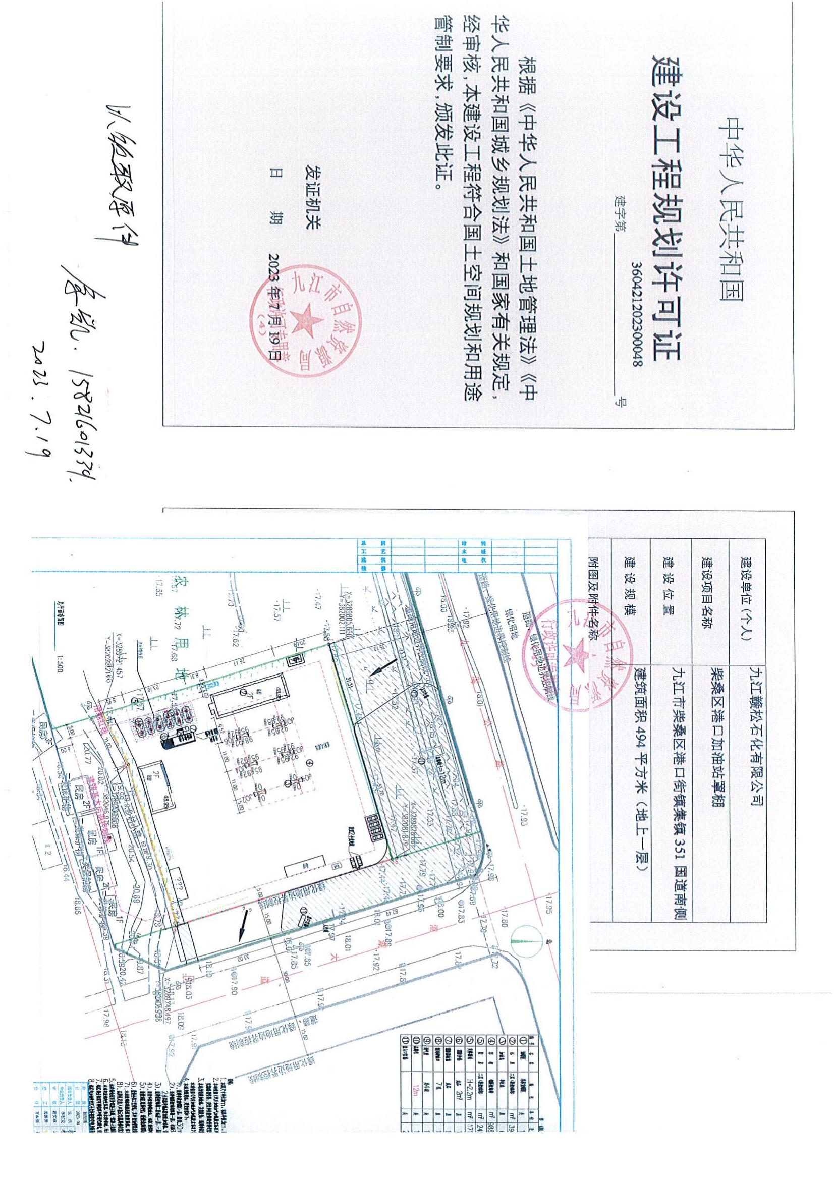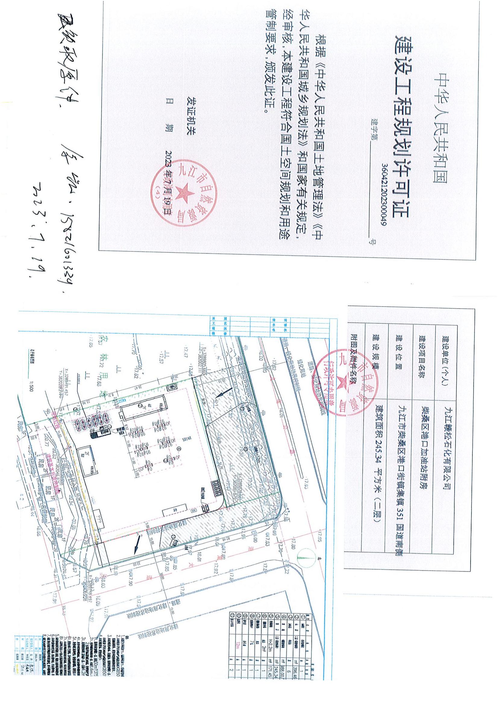 柴桑区港口加油站项目建设工程规划许可证批准结果公示