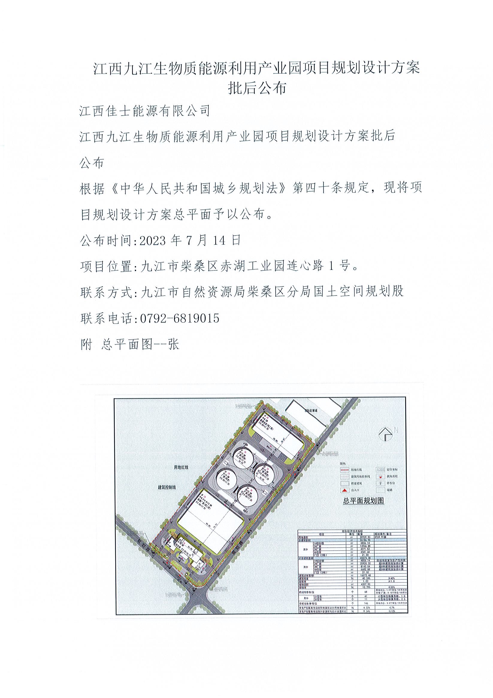江西九江生物质能源利用产业园项目规划设计方案批后公布