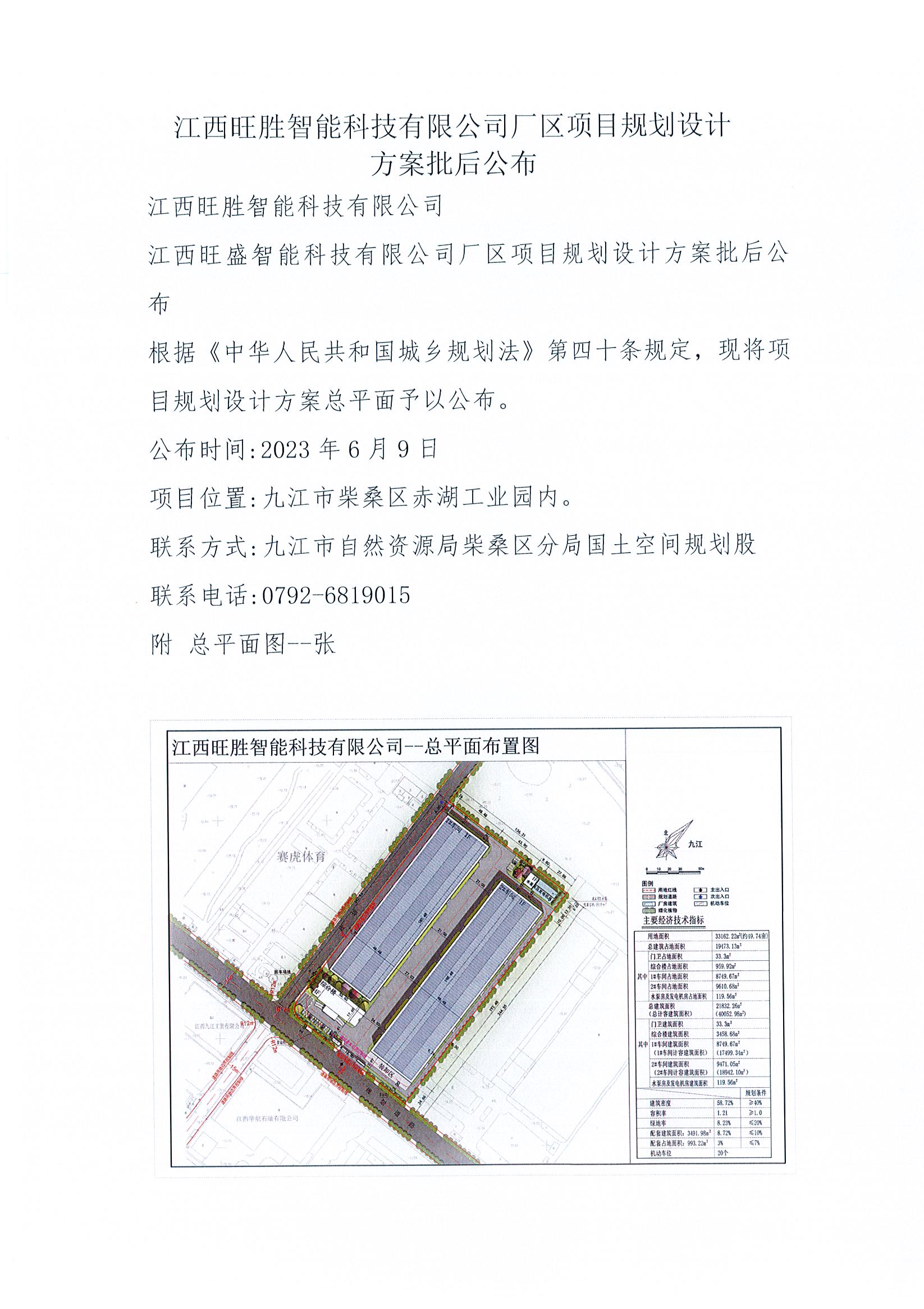 江西旺盛智能科技有限公司厂区项目规划设计方案批后公布