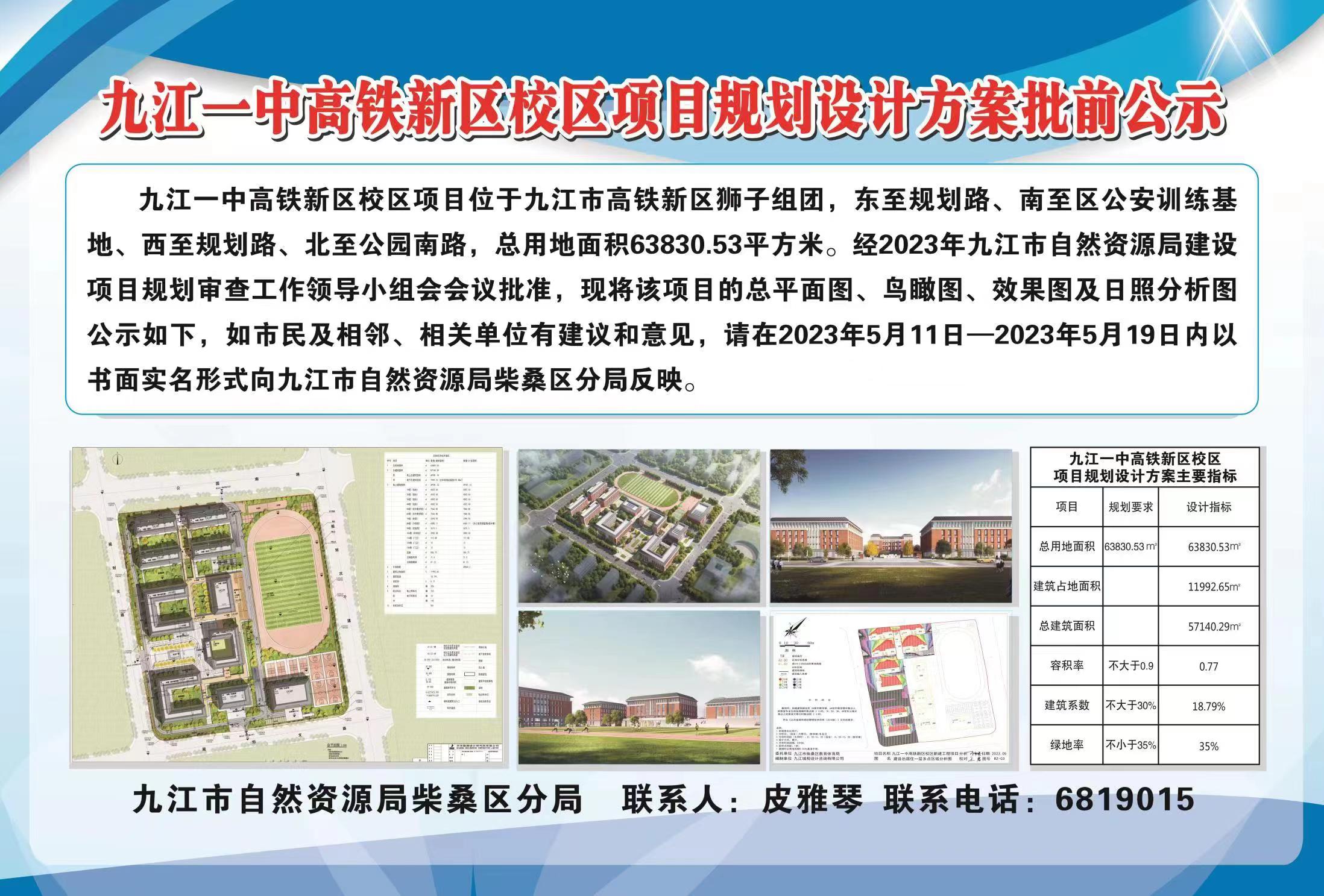 九江一中高铁新区校区项目规划设计方案批前公示