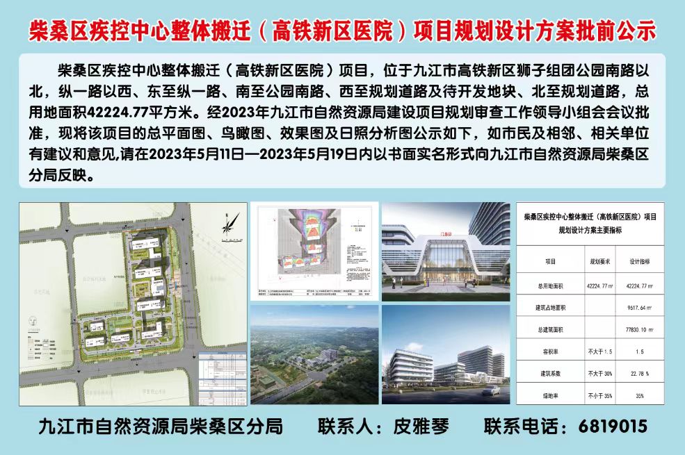 柴桑区疾控中心整体搬迁(高铁新区医院)项目规划设计方案批前公示