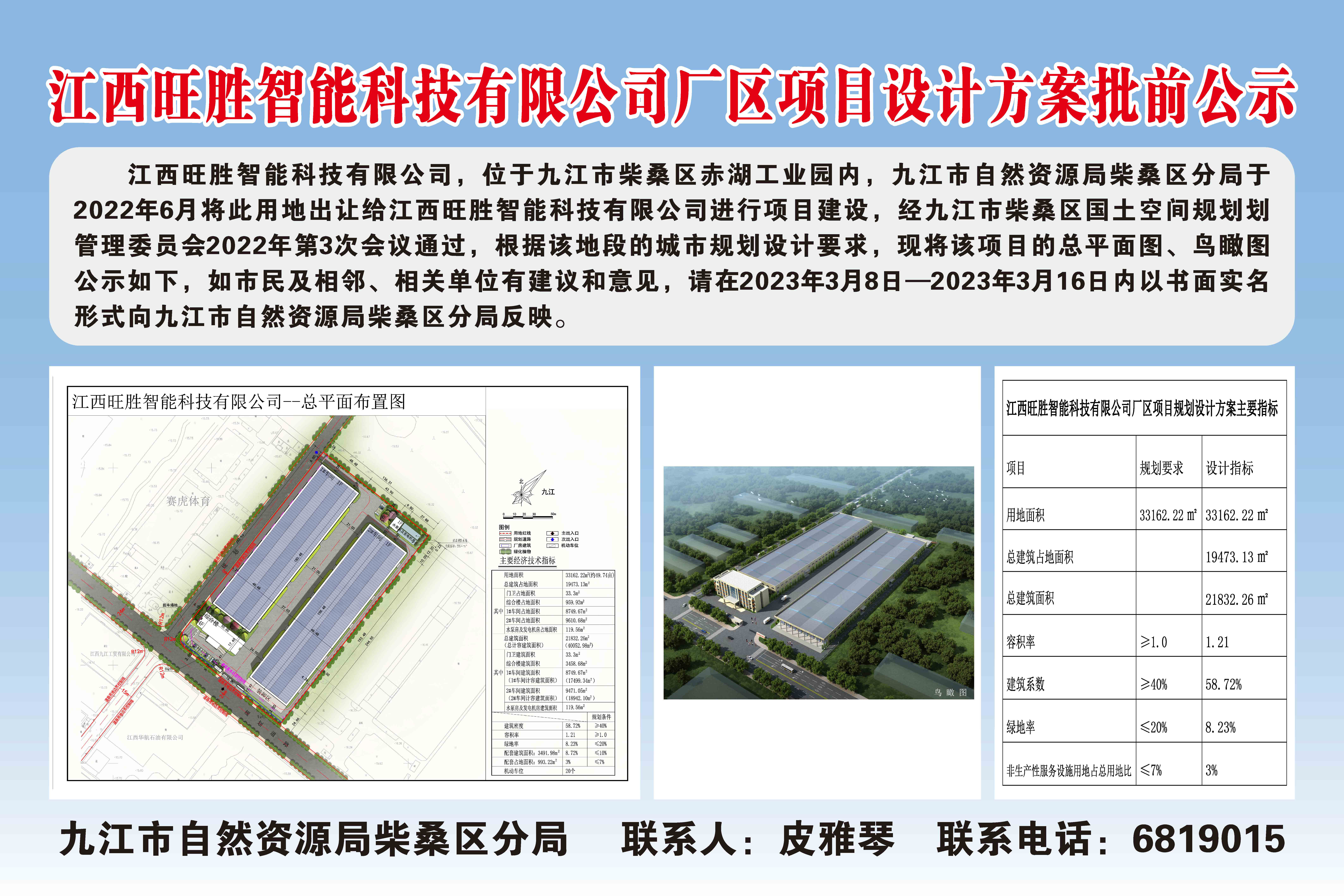 江西旺盛智能科技有限公司厂区项目设计方案批前公示