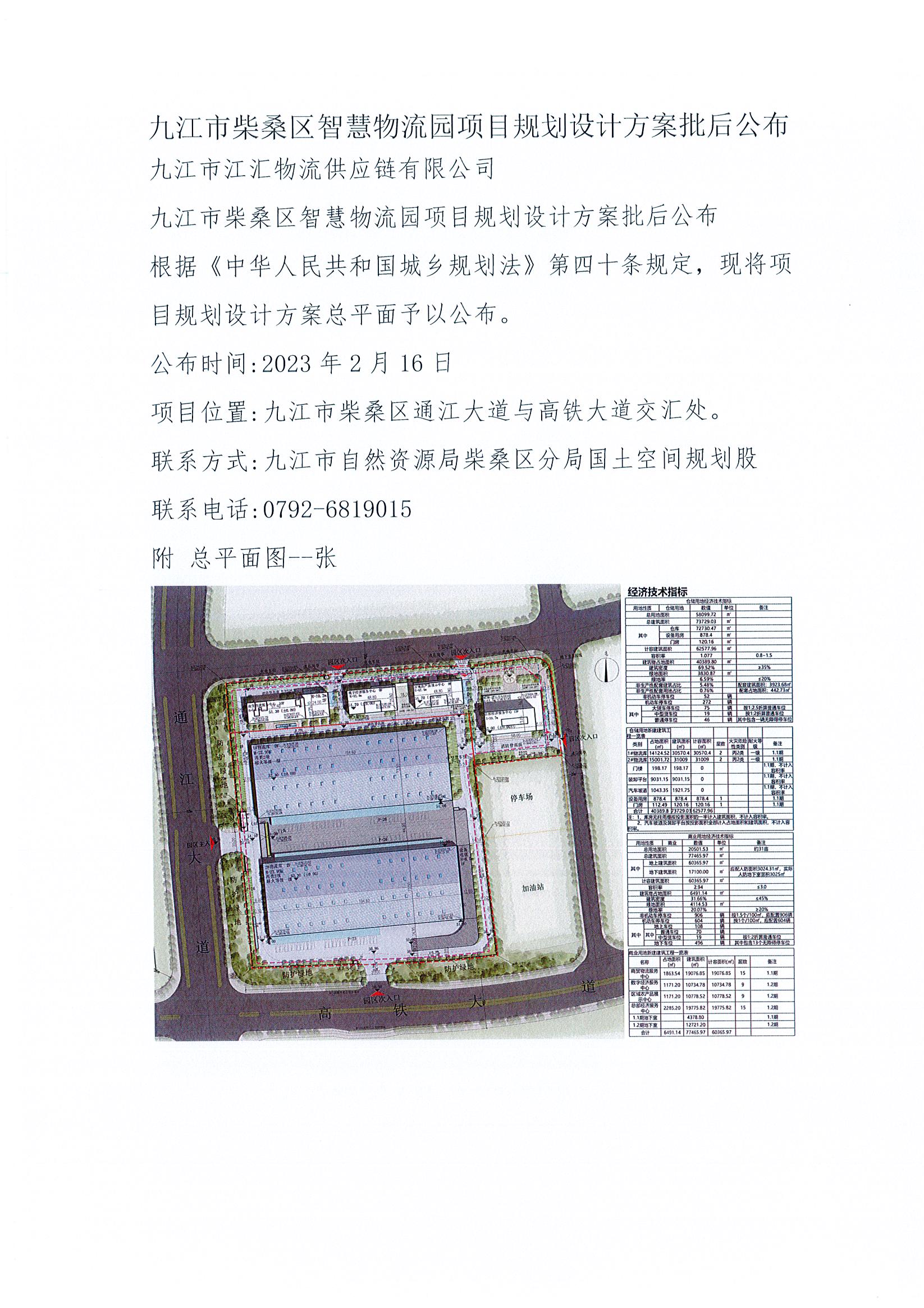 九江市柴桑区智慧物流园项目规划设计方案批后公布