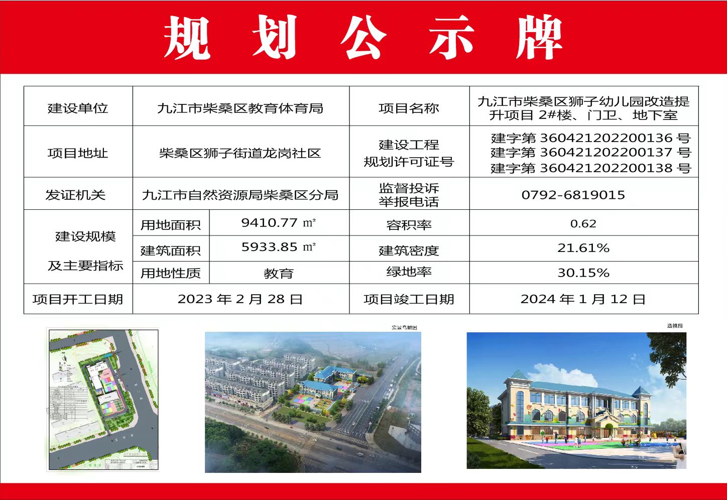 九江市柴桑区狮子幼儿园改造提升项目*#楼、门卫、地下室批后公示