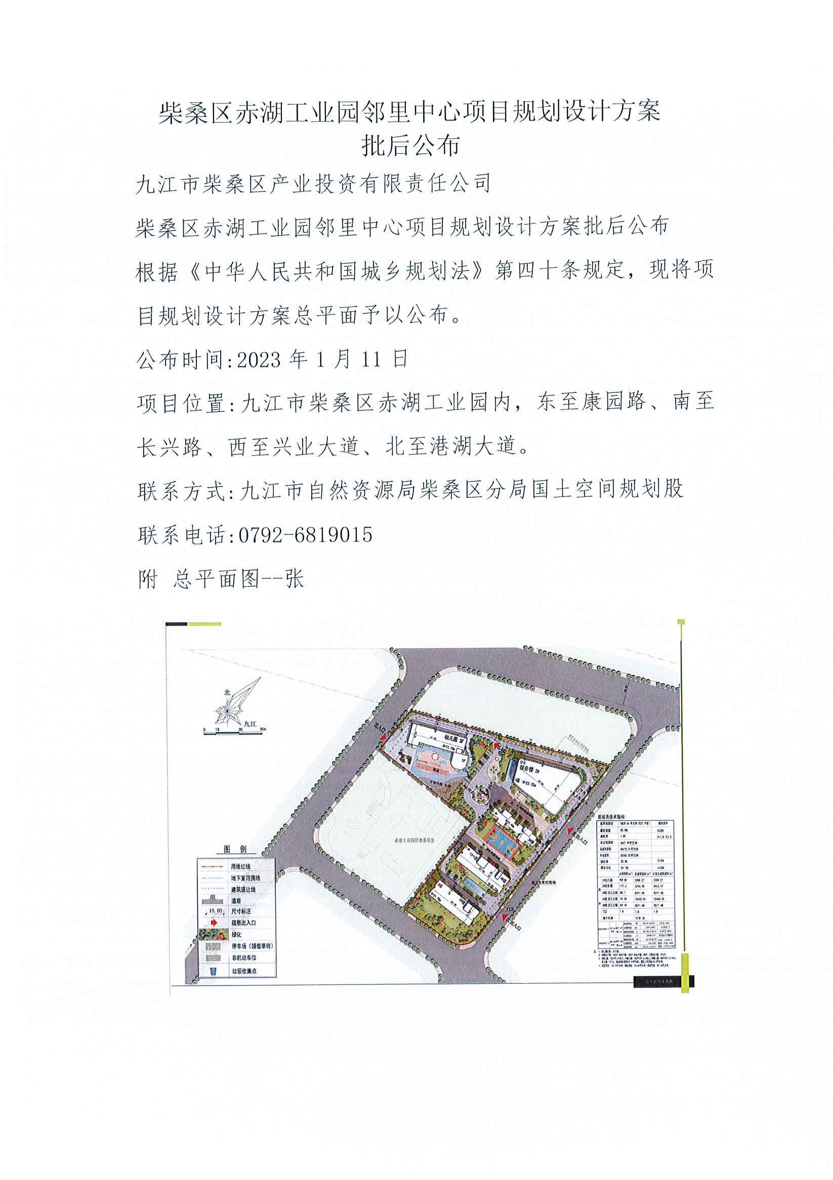 柴桑区赤湖工业园邻里中心项目规划设计方案批后公布