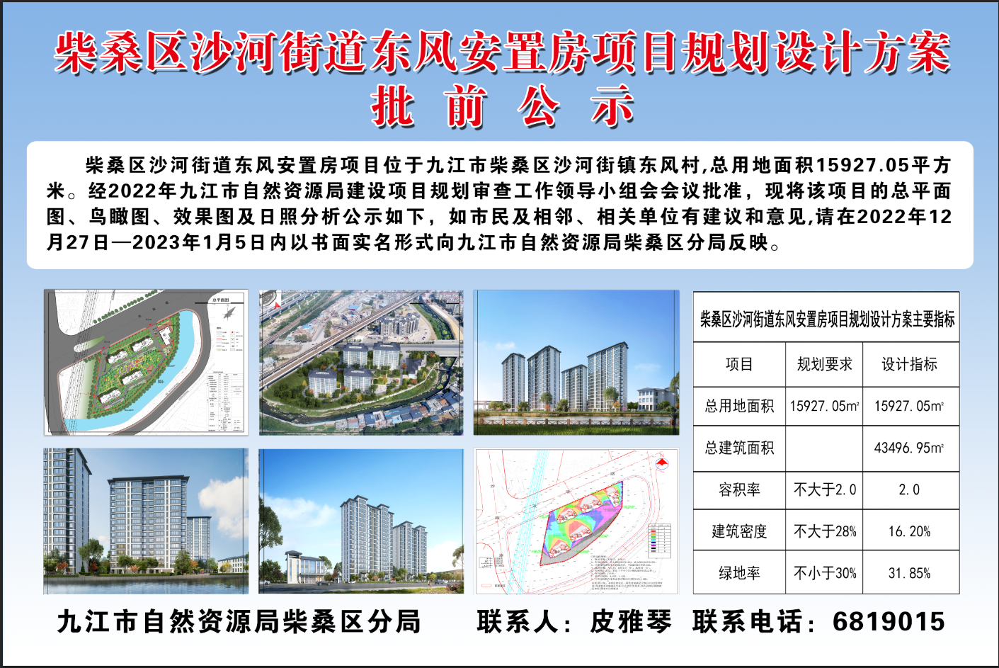 柴桑区沙河街道东风安置房项目规划设计方案批前公示