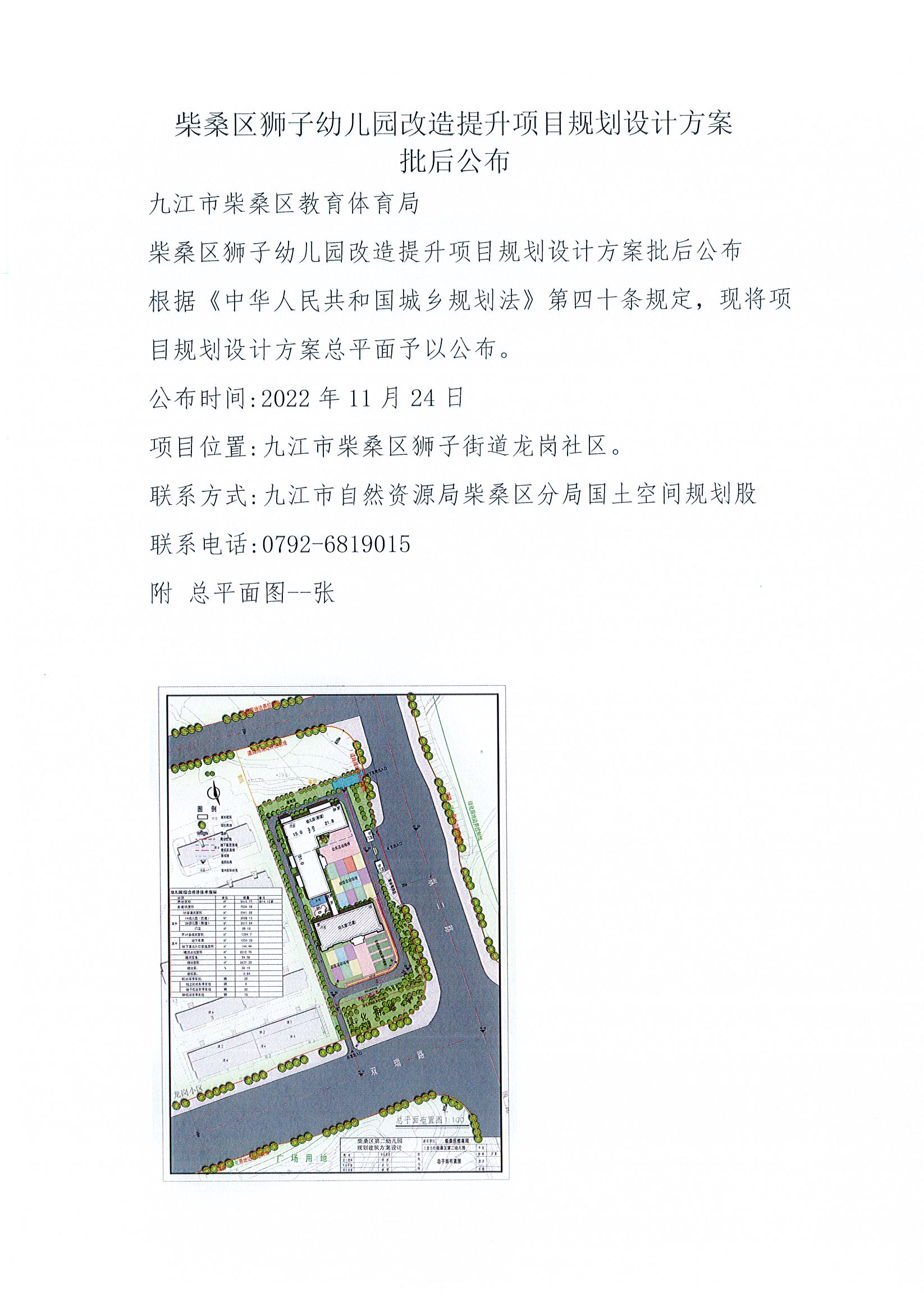 柴桑区狮子幼儿园改造提升项目规划设计方案批后公布