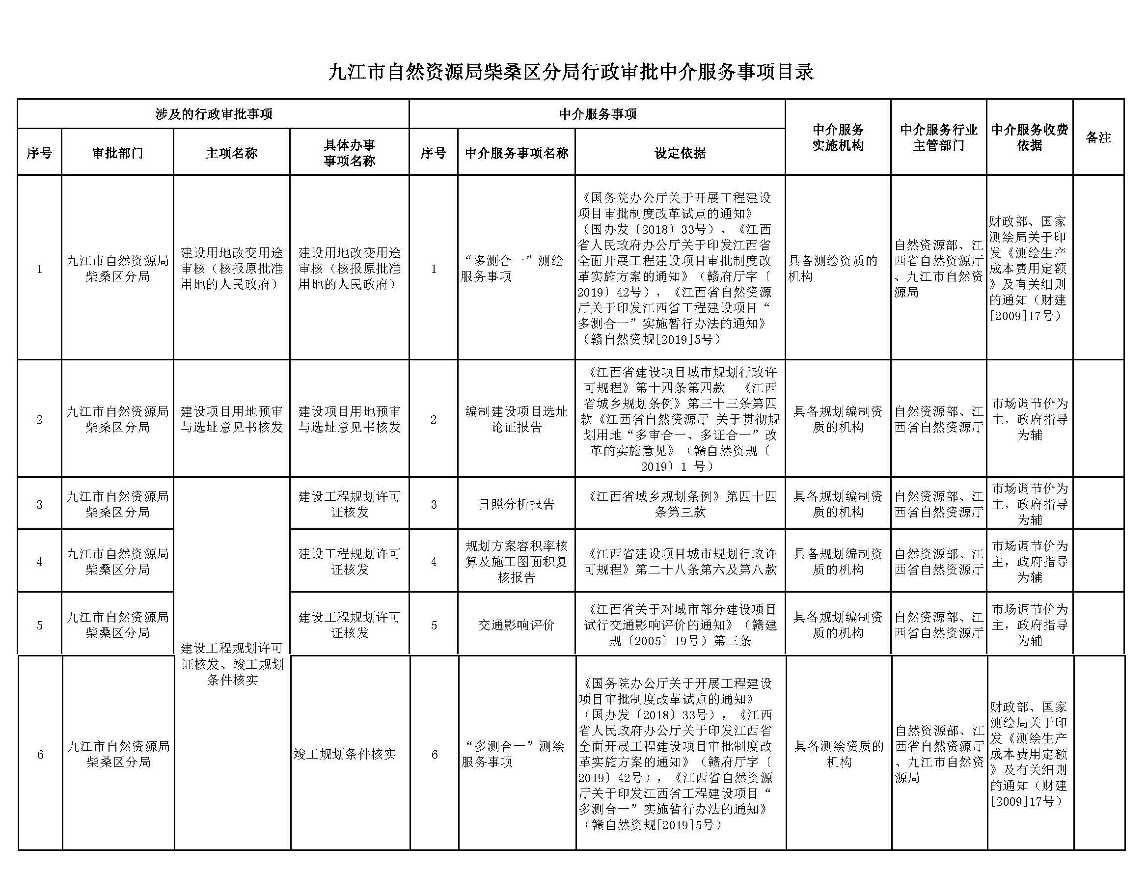 九江市自然资源局柴桑区分局行政审批中介服务事项目录