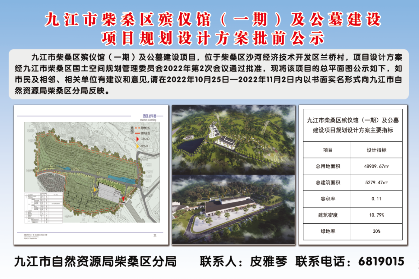 九江市柴桑区殡仪馆(一期)及公墓建设项目规划设计方案批前公示