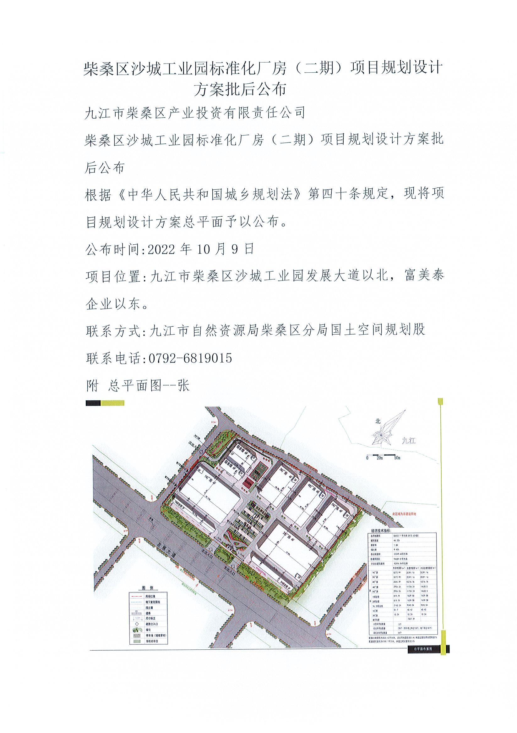 柴桑区沙城工业园标准化厂房(二期)项目规划设计方案批后公布
