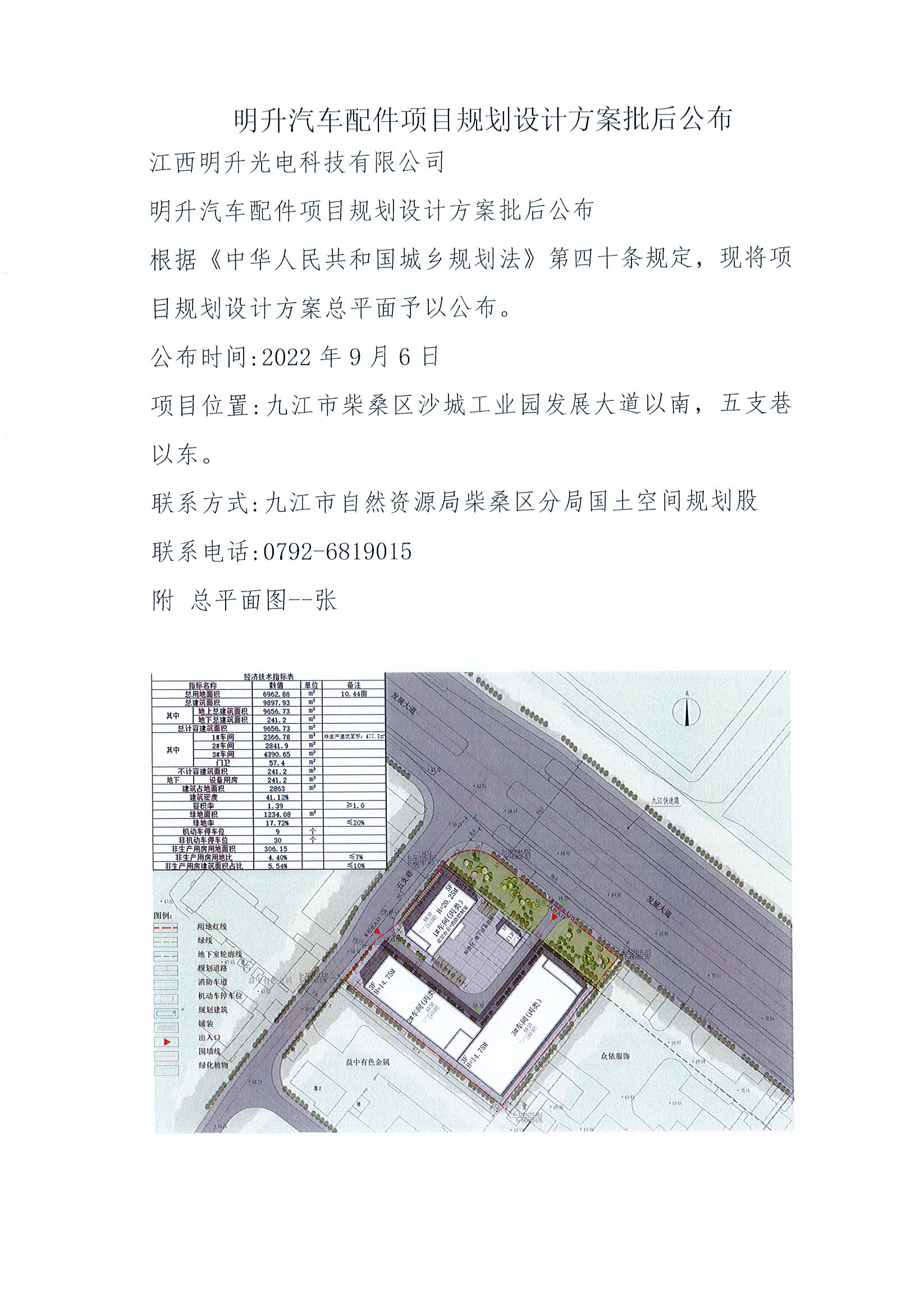 明升汽车配件项目规划设计方案批后公布