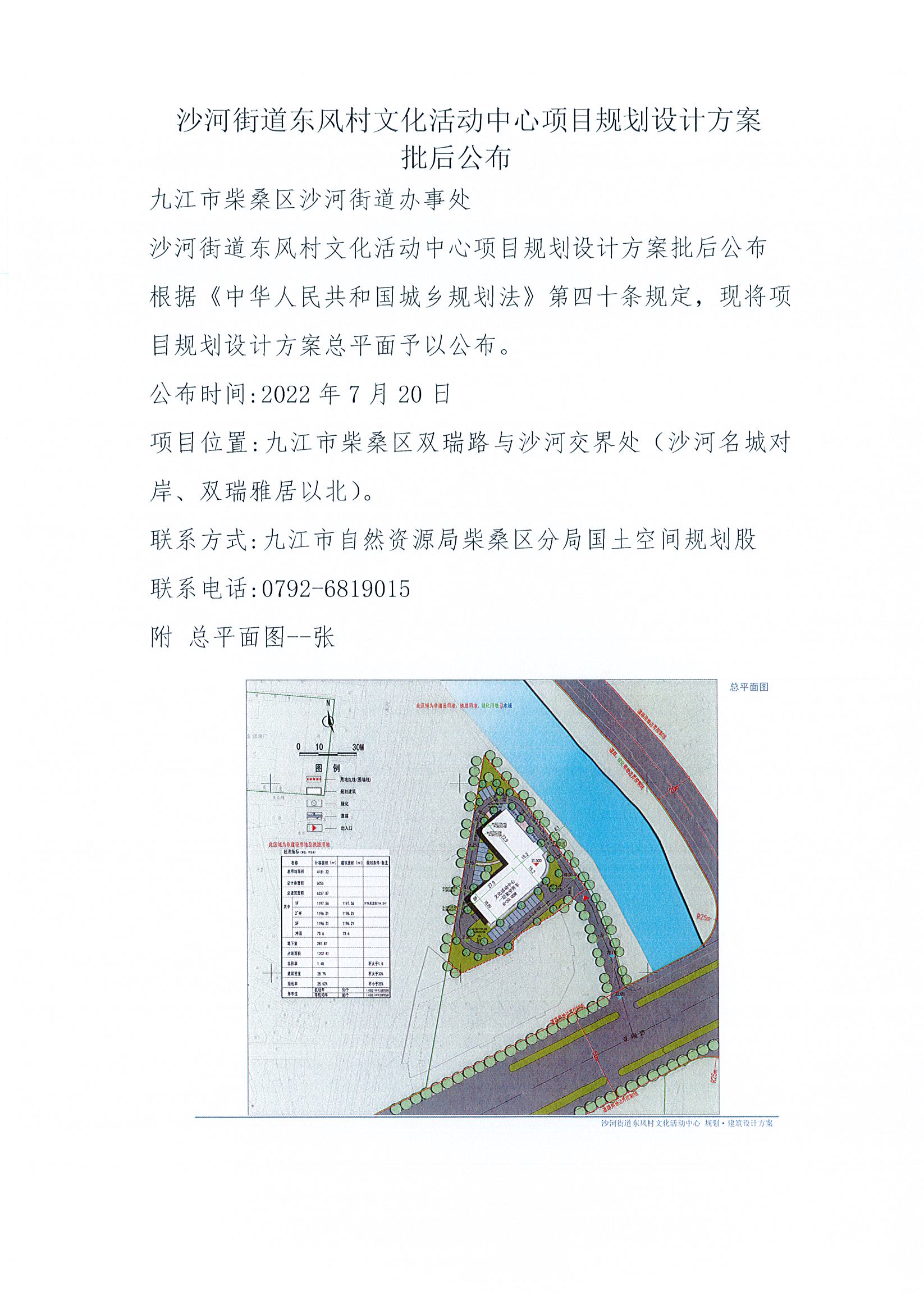 沙河街道东风村文化活动中心项目规划设计方案批后公布