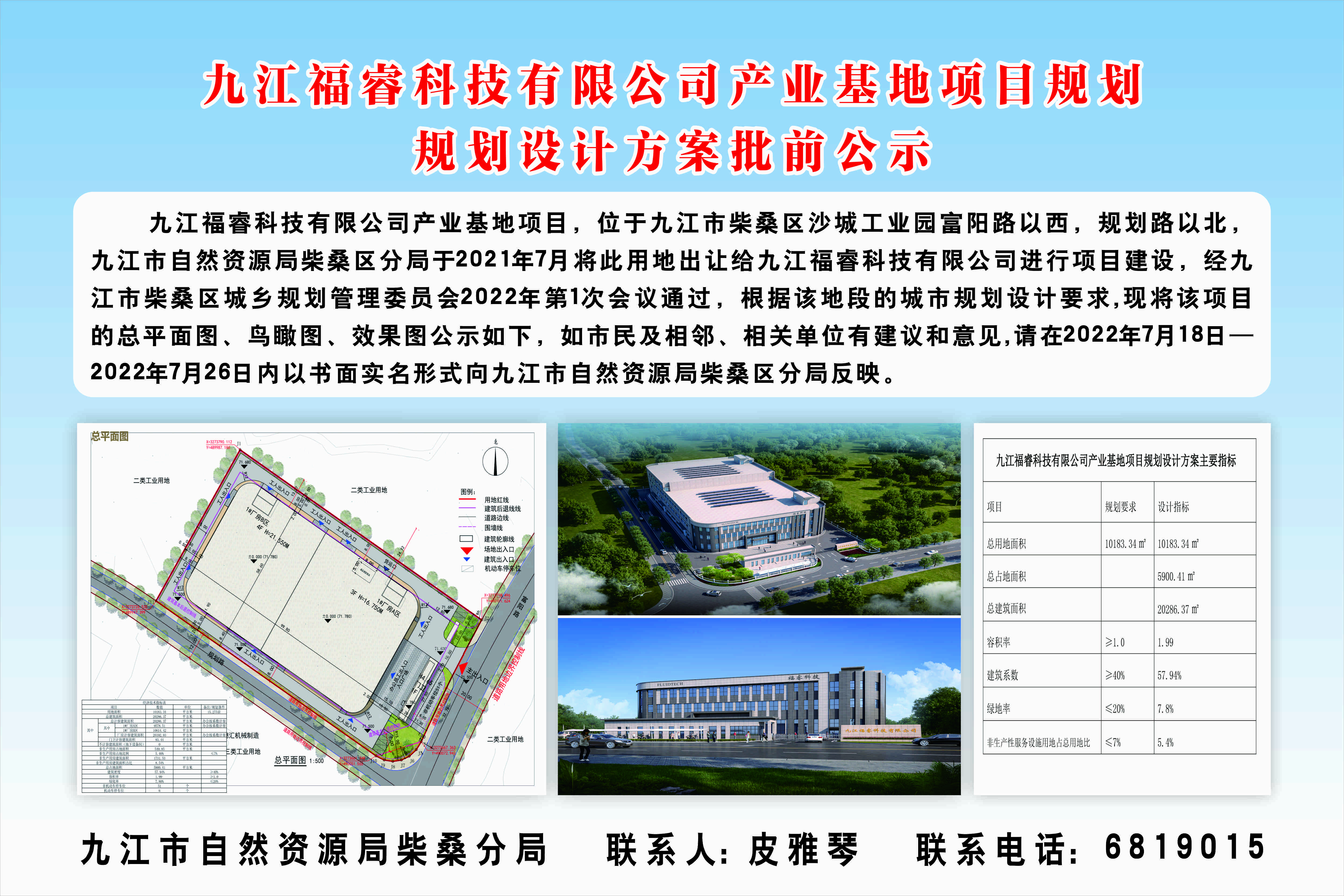 九江福睿科技有限公司产业基地项目规划设计方案批前公示