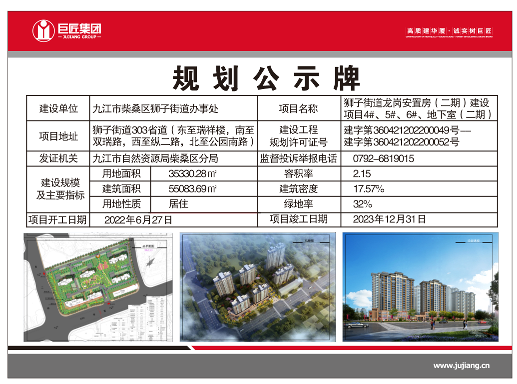 狮子街道龙岗安置房(二期)建设项目4#、5#、6#、地下室(二期)项目批后公示
