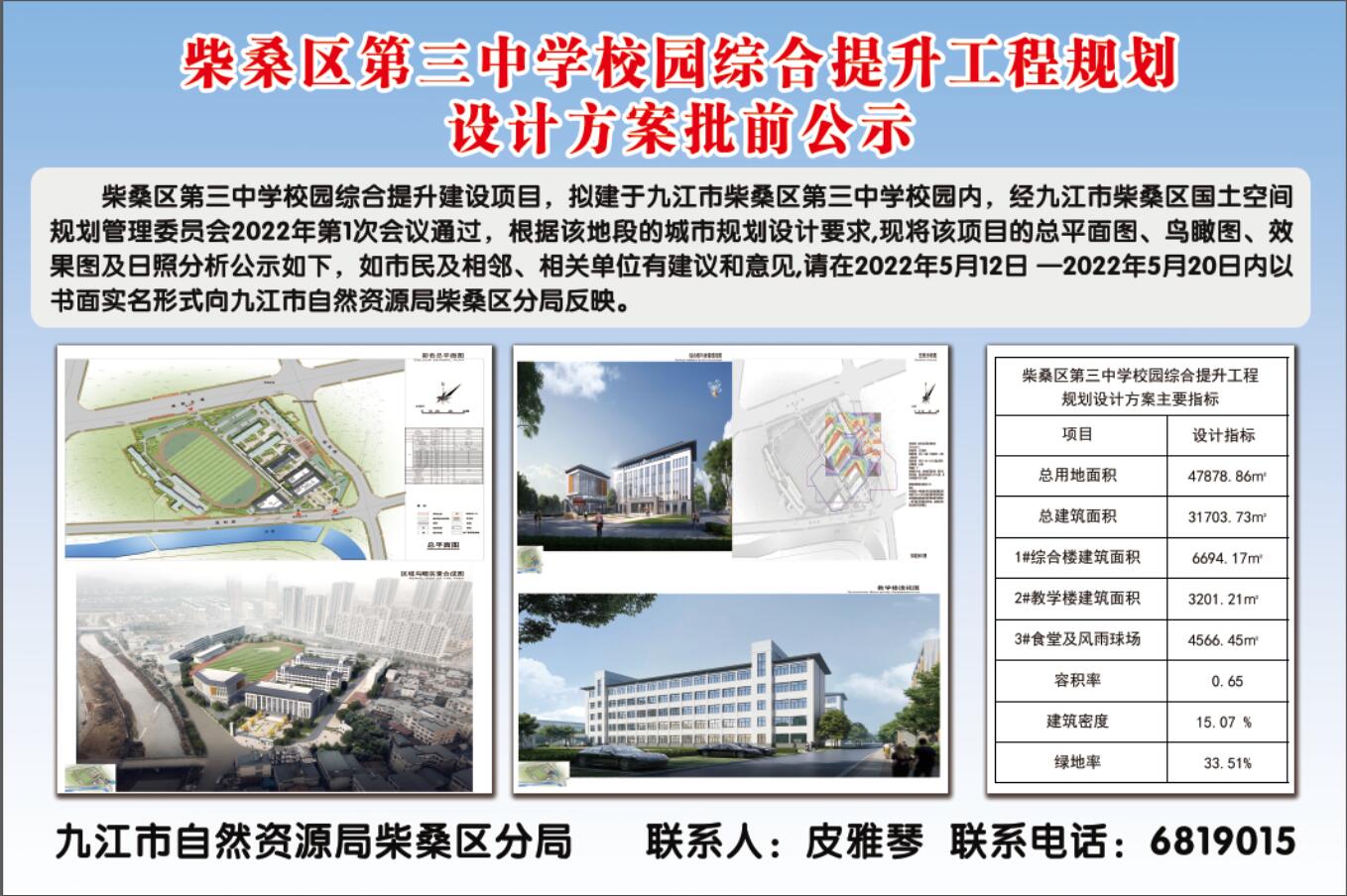 柴桑区第三中学校园综合提升工程规划设计方案批前公示