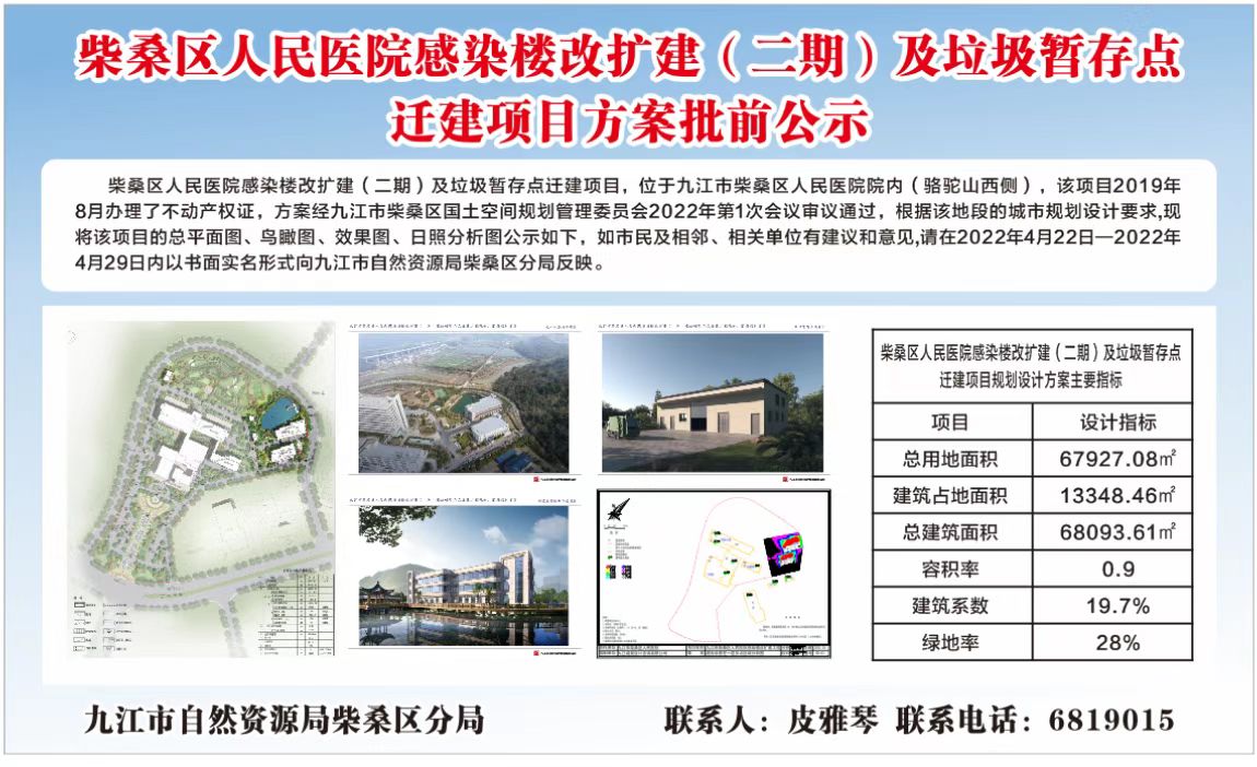 柴桑区人民医院感染楼改扩建(二期)及垃圾暂存点迁建项目方案批前公示
