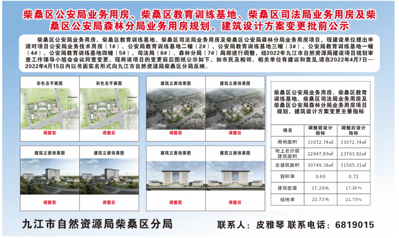 柴桑区公安局业务用房、柴桑区教育训练基地、柴桑区司法局业务用房及柴桑区公安局森林分局业务用房规划、建筑设计方案变更批前公示